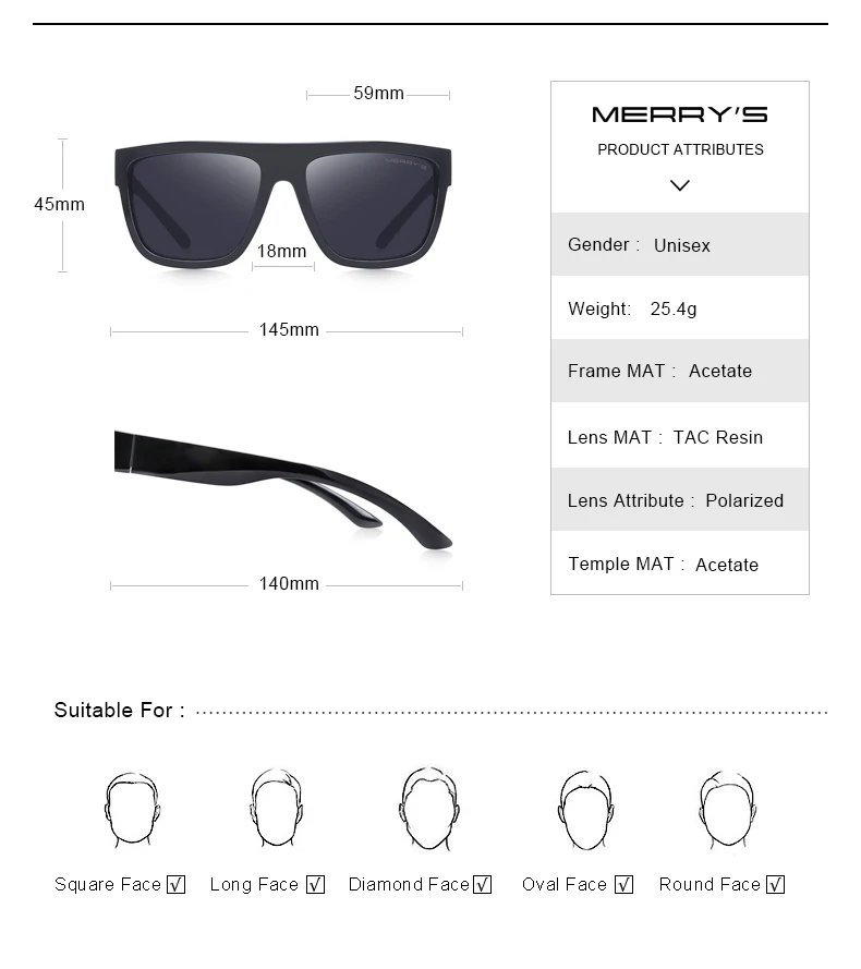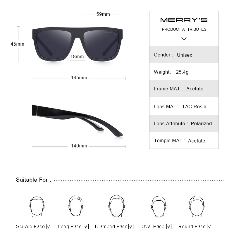 MERRYS, дизайнерские, квадратные, поляризационные солнцезащитные оч...