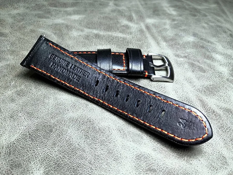 Высококачественный Итальянский черный кожаный ремешок ручной работы...