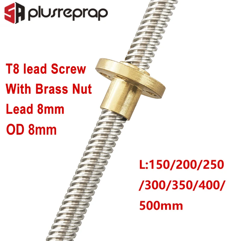 Свинцовый винт T8 OD 8 мм шаг 2 мм вывод 8 мм 150 мм 200 мм 250 мм 300 мм 350 мм 400 мм 500 мм с латунной гайкой для 3D-принтера Reprap