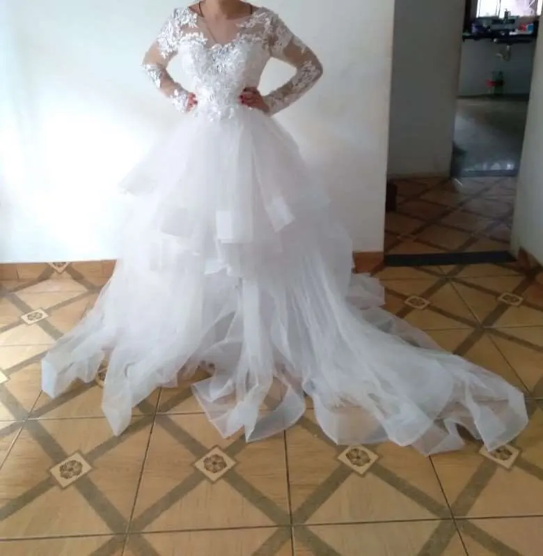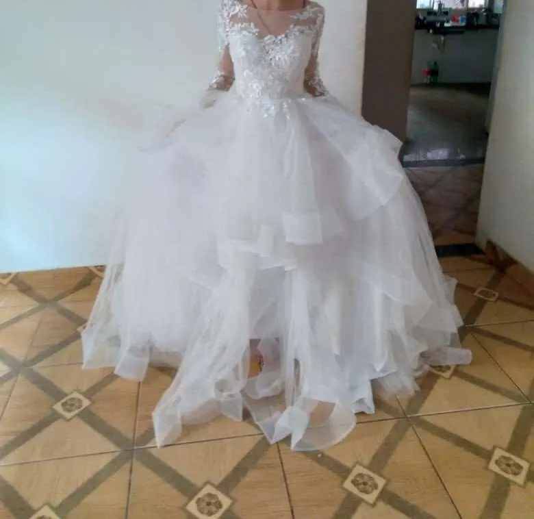 Элегантное кружевное бальное платье с аппликацией и длинным рукавом, белое свадебное платье, роскошные сексуальные фатиновые свадебные платья, vestido de noiva Princess