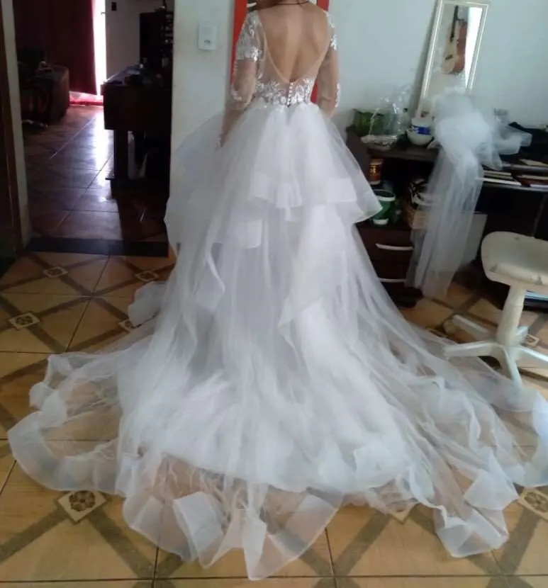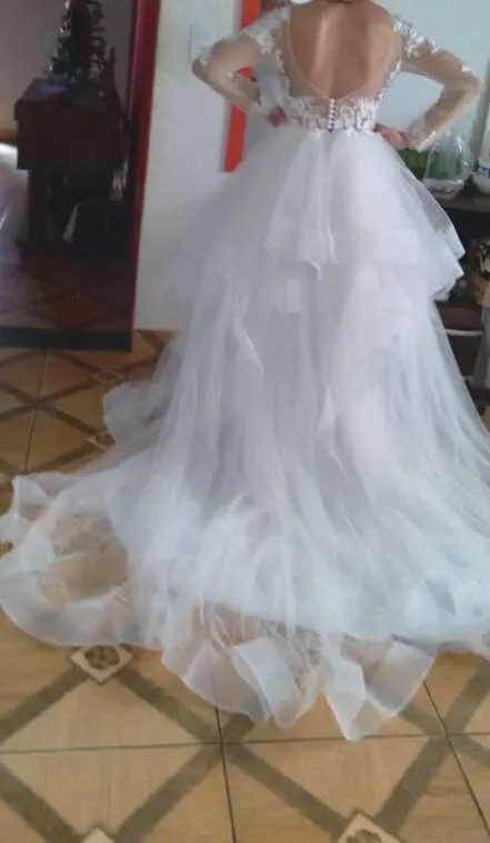 Платье свадебное кружевное ТРАПЕЦИЕВИДНОЕ с длинным рукавом, 2021