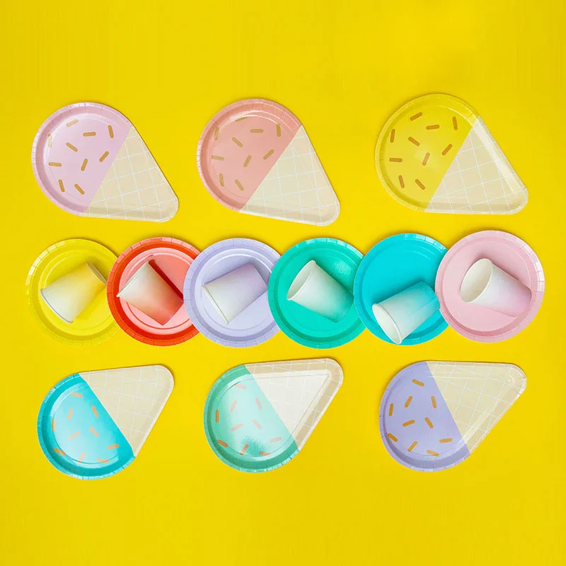 Одноразовые столовые приборы вечерние принадлежности для дня рождения вечерние украшения для детей свадебные украшения 8 шт/1 мешок мороженое бумажная тарелка соусник