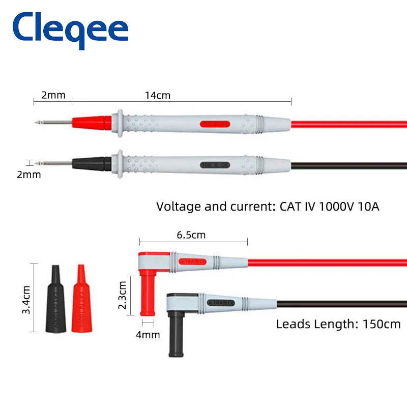 Cleqee P1505 1,5 м двойной силиконовый датчики для мультиметра 4 мм разъем типа "банан" Тестовые провода с 2 мм медной иглой 1000V10A