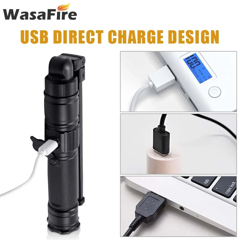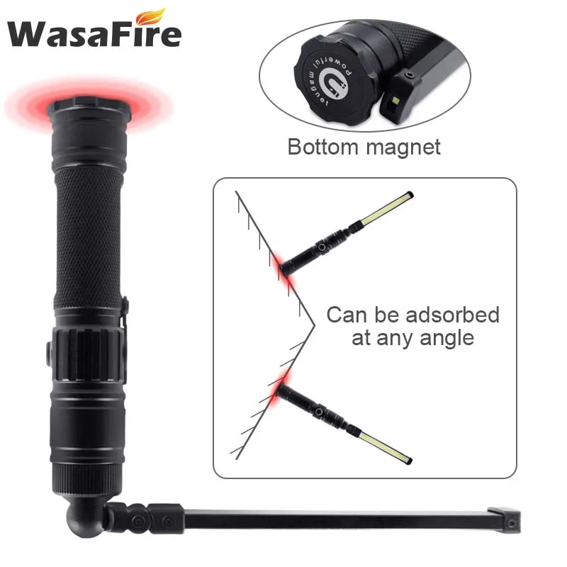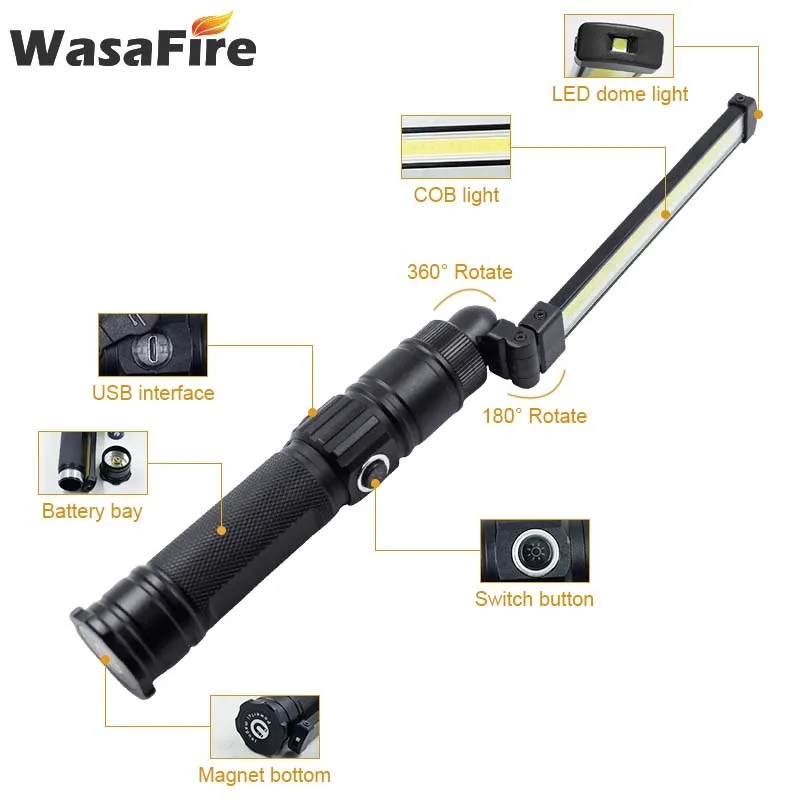 Складной рабочий фонарик Wasafire с COB матрицей, водонепроницаемый перезаряжаемый светодиодный магнитный фонарь с 5 режимами, портативный светильник