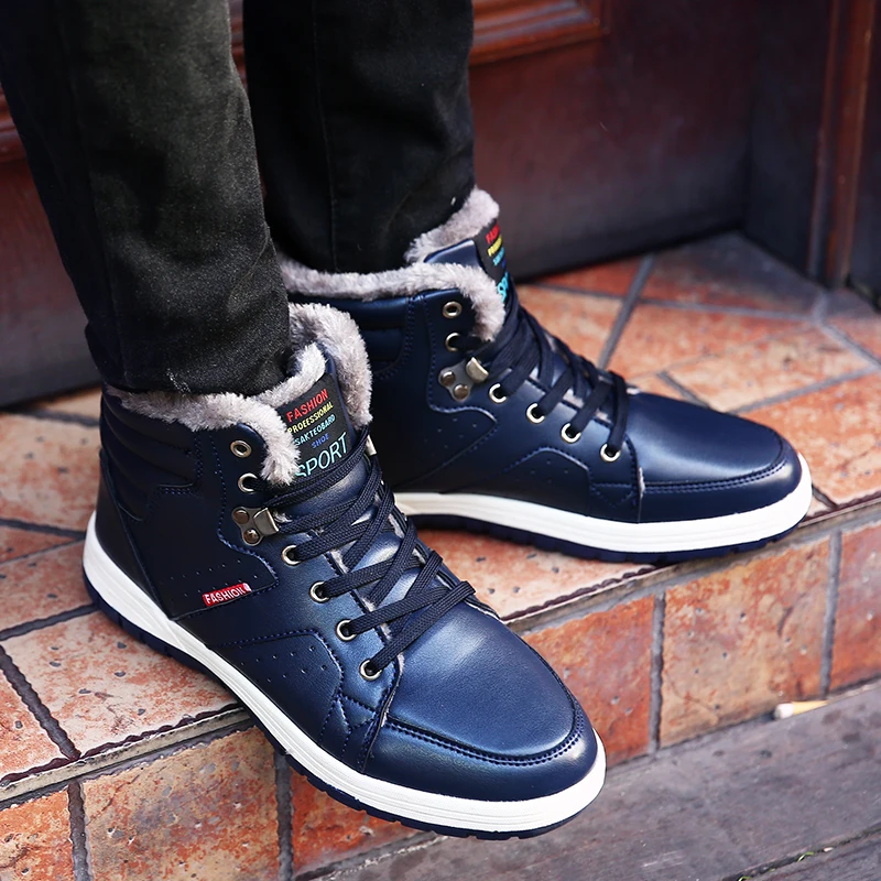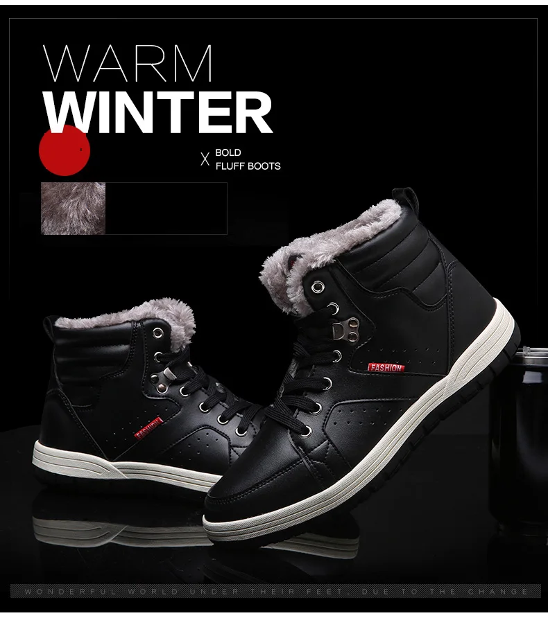 Большие размеры, мужские зимние кроссовки с мехом внутри, теплая плюшевая коричневая обувь для мужчин, 2019 zapatos de hombre, высокие кроссовки, размер 45, 46, 47