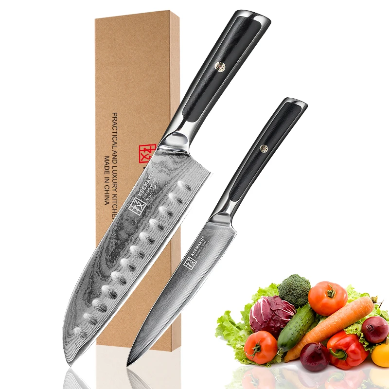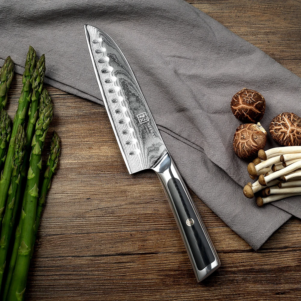 KEEMAKE Дамаск Santoku универсальный нож 73 слоя Damasucs стальные ножи японский VG10 ядро лезвие режущий инструмент, кухонный нож G10 Ручка