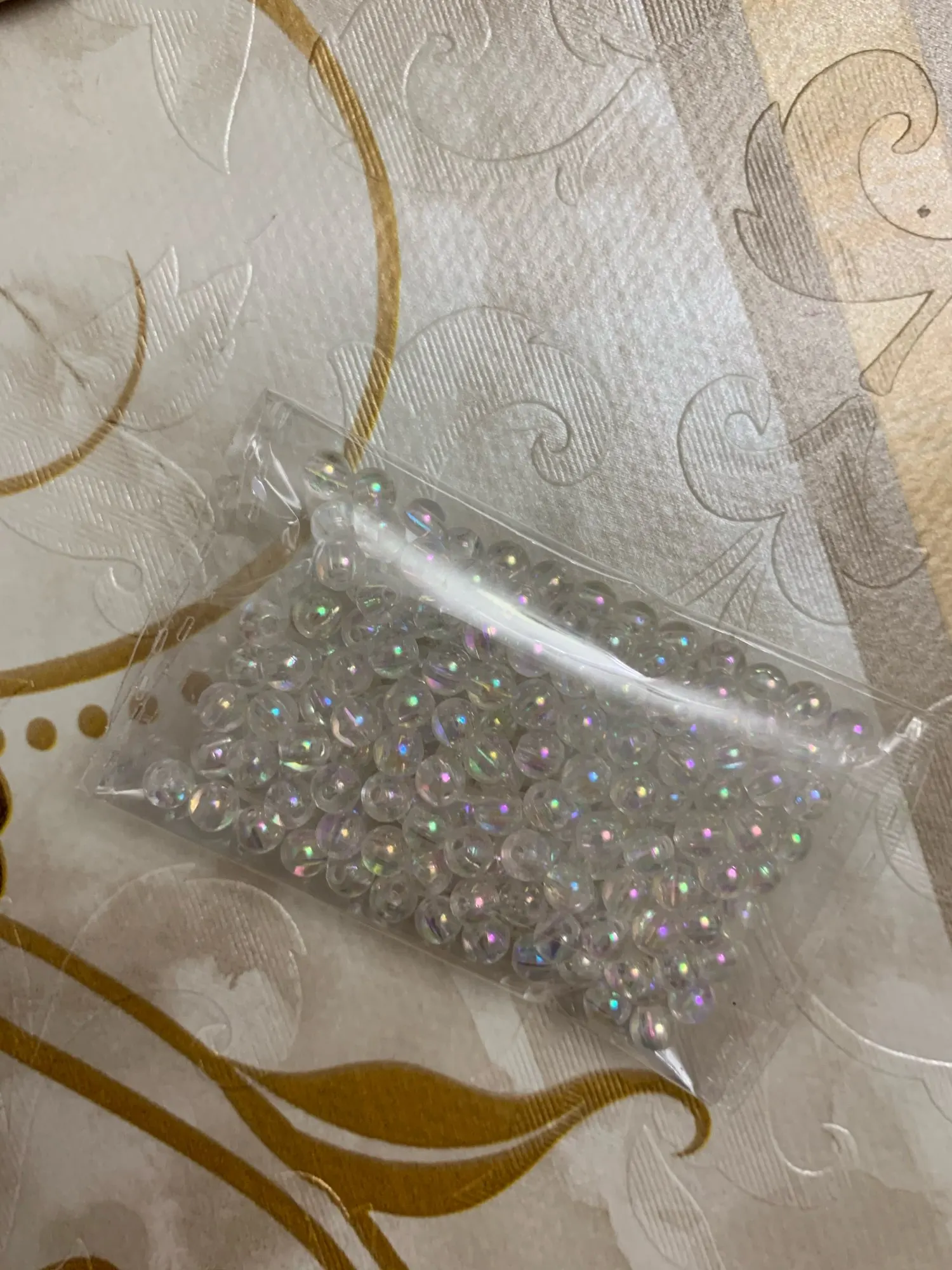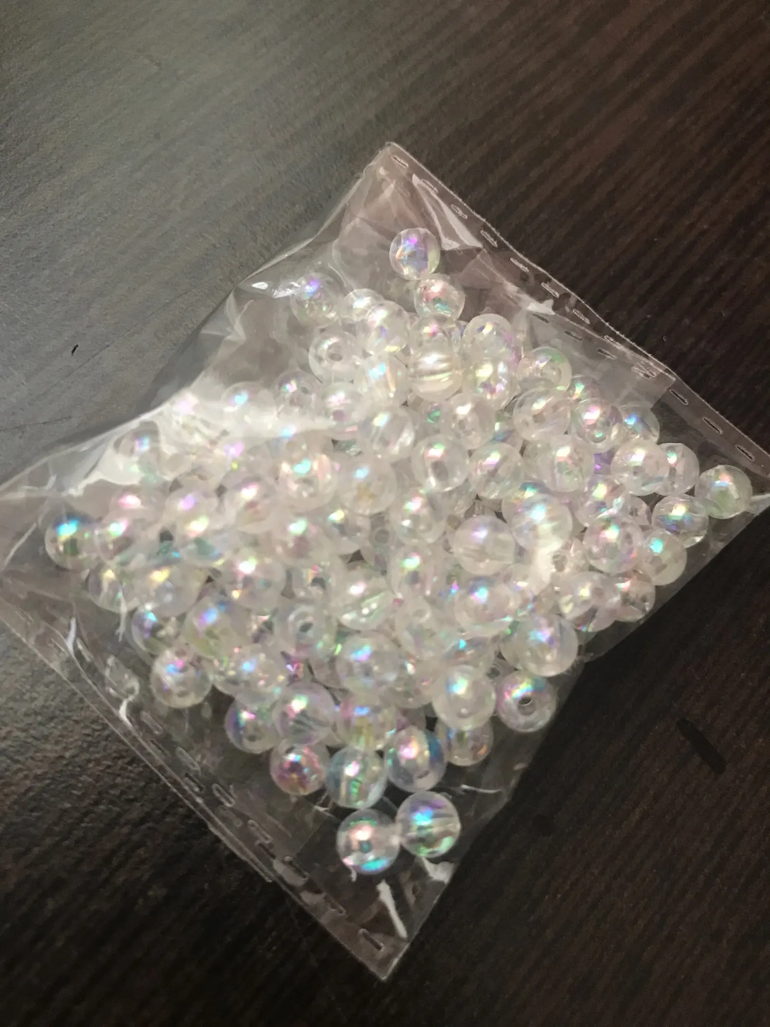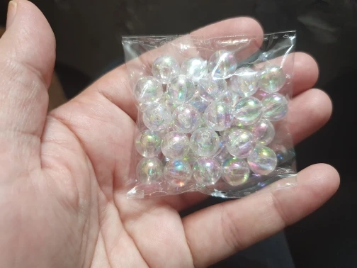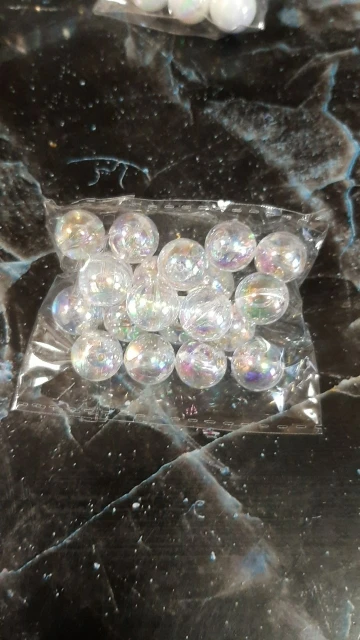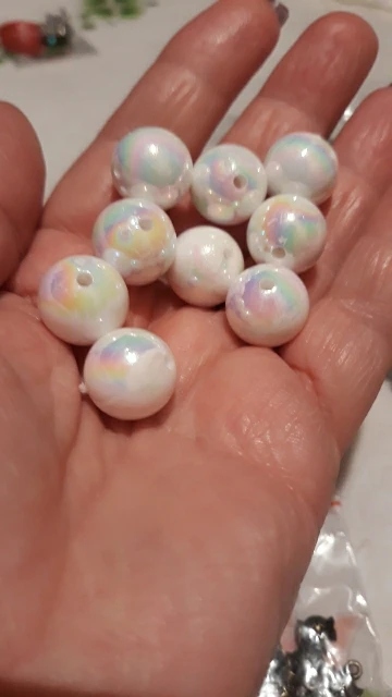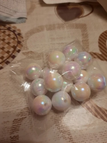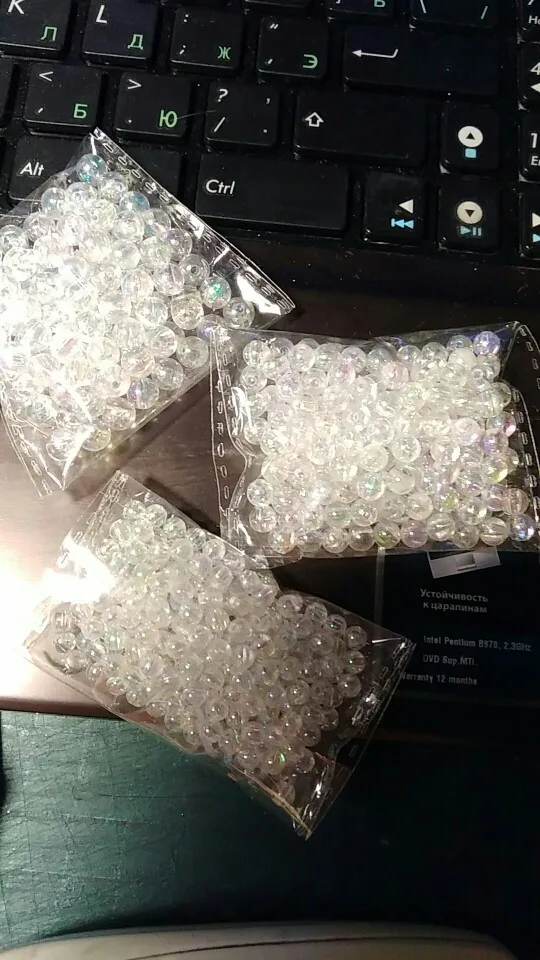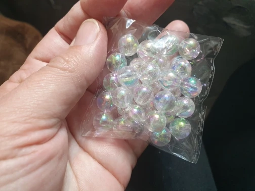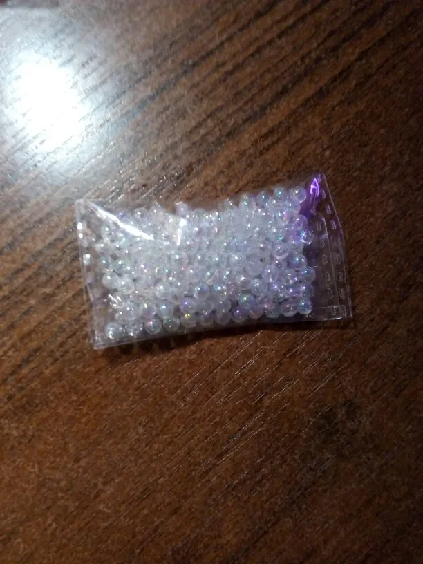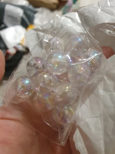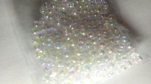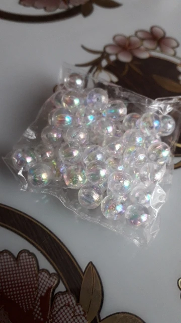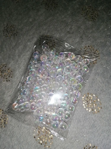 крупные бусины видно, что в царапинах, покоцанные, более мелкие ещё норм. Переливаются как мыльные пузыри