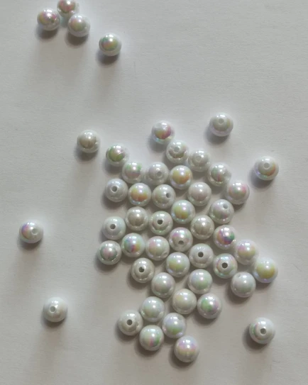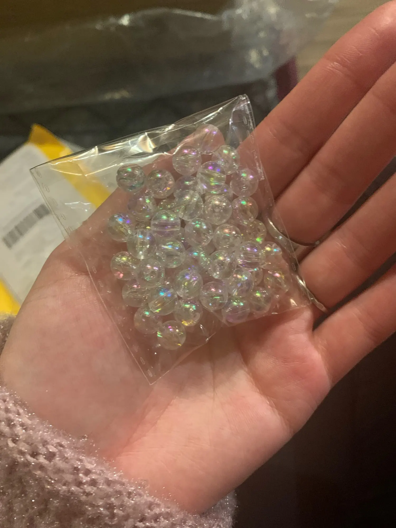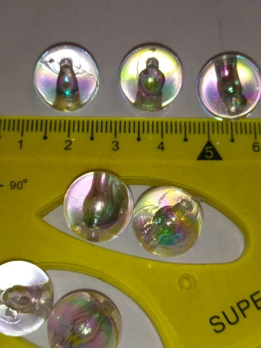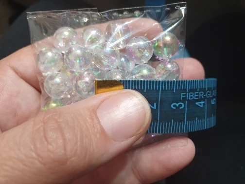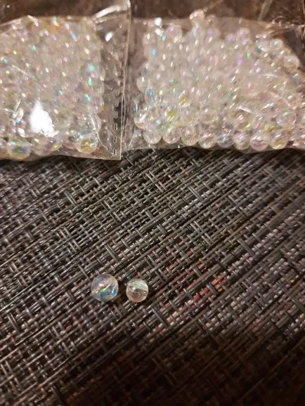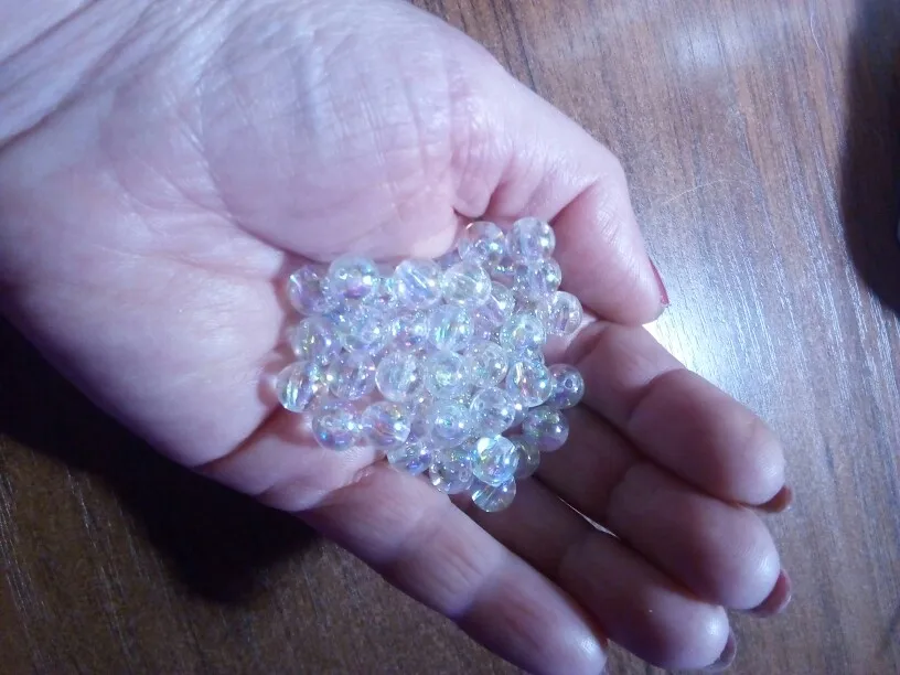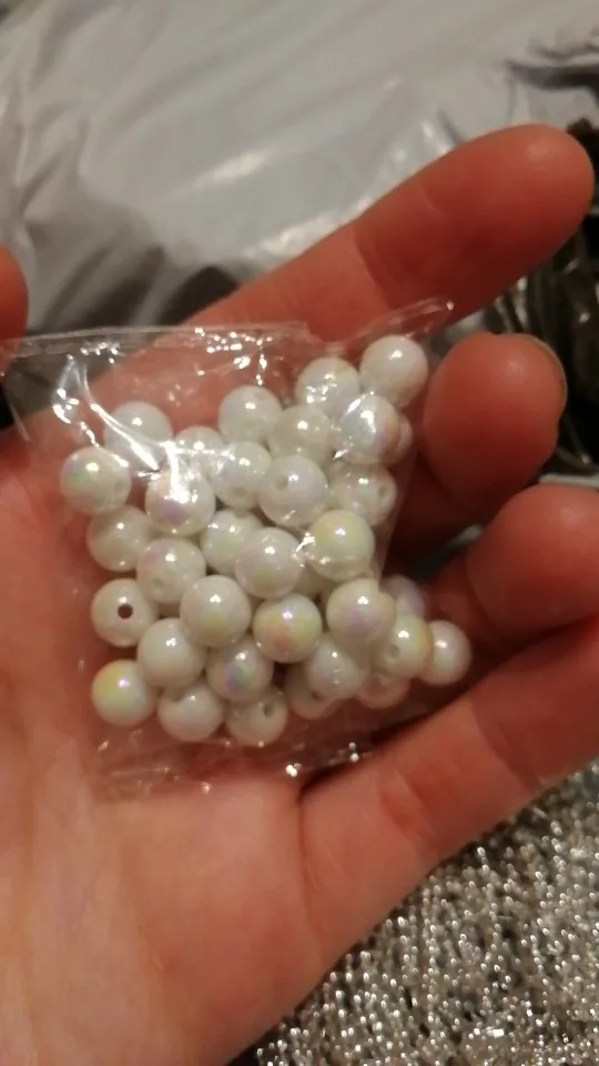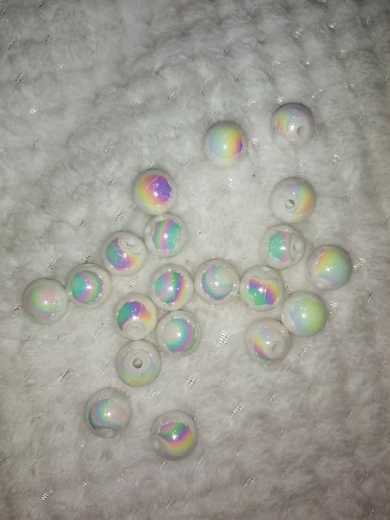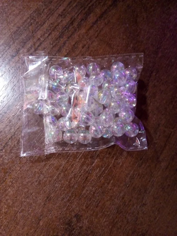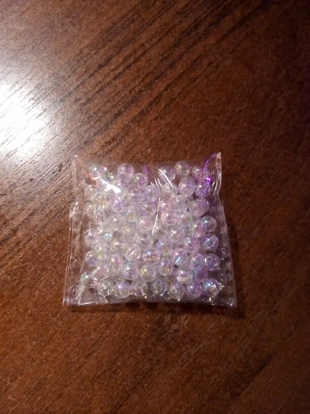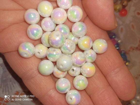 крупные бусины видно, что в царапинах, покоцанные, более мелкие ещё норм. Переливаются как мыльные пузыри