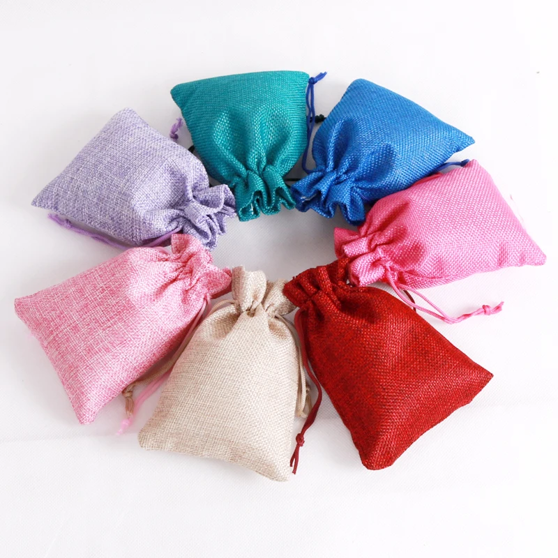 6 размеров 50 шт.лот Винтаж натуральная Мешковина джутовые подарочные мешочки мешки для конфет, свадебный пользу шнурок мешок ювелирных изделий Подарочный пакет коробки