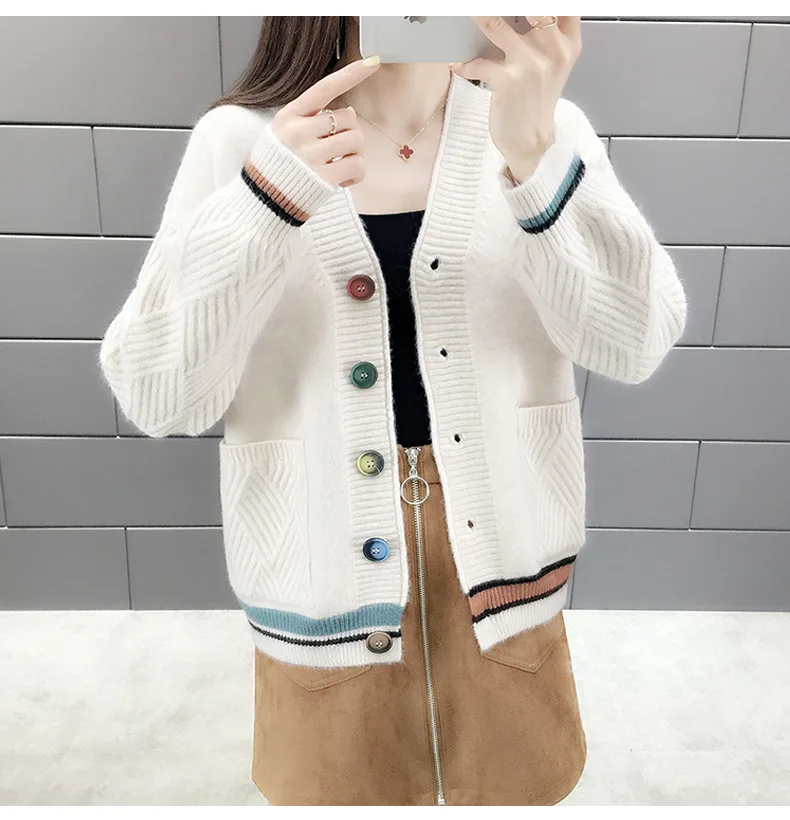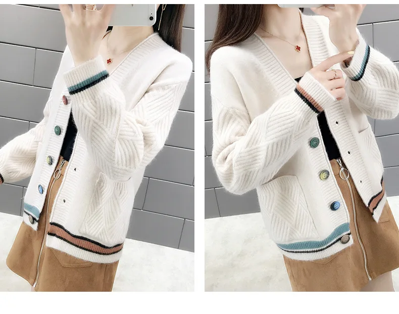 Модный Элегантный Теплый осенне-зимний свитер кардиган женский вязаный зимний свитер кардиган Повседневный осенний белый кардиган NS4396