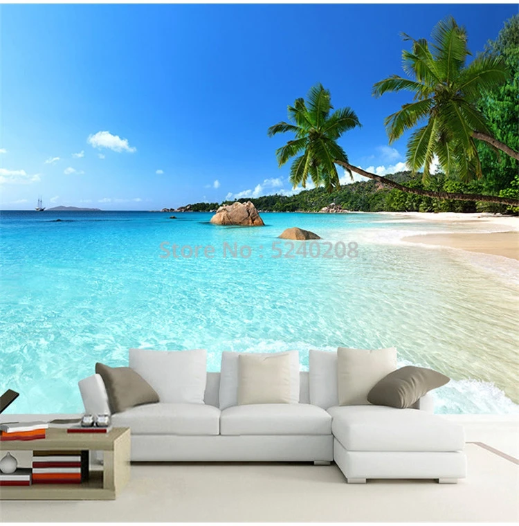 Пользовательские 3D фото обои морской берег palm настенные фрески, ...