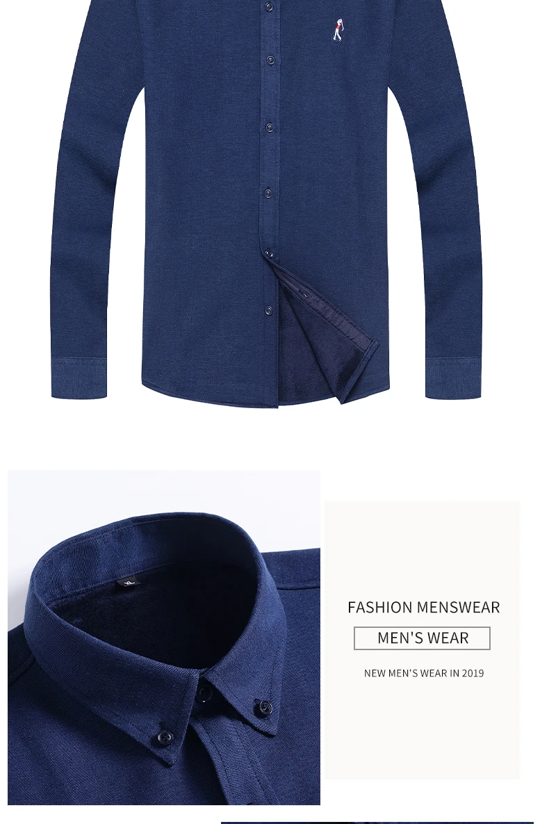Мужская Фланелевая рубашка Aoliwen, зимняя однотонная теплая рубашка оксфорд с длинным рукавом, с флисовой подкладкой, повседневная, 2019