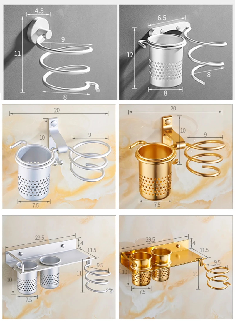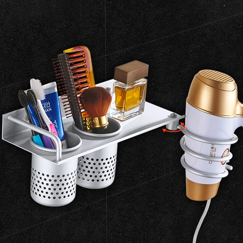 Настенный держатель для фена, стойка, полка для ванной комнаты, пространство, алюминиевый держатель для фена, органайзер для хранения, аксессуары для ванной комнаты