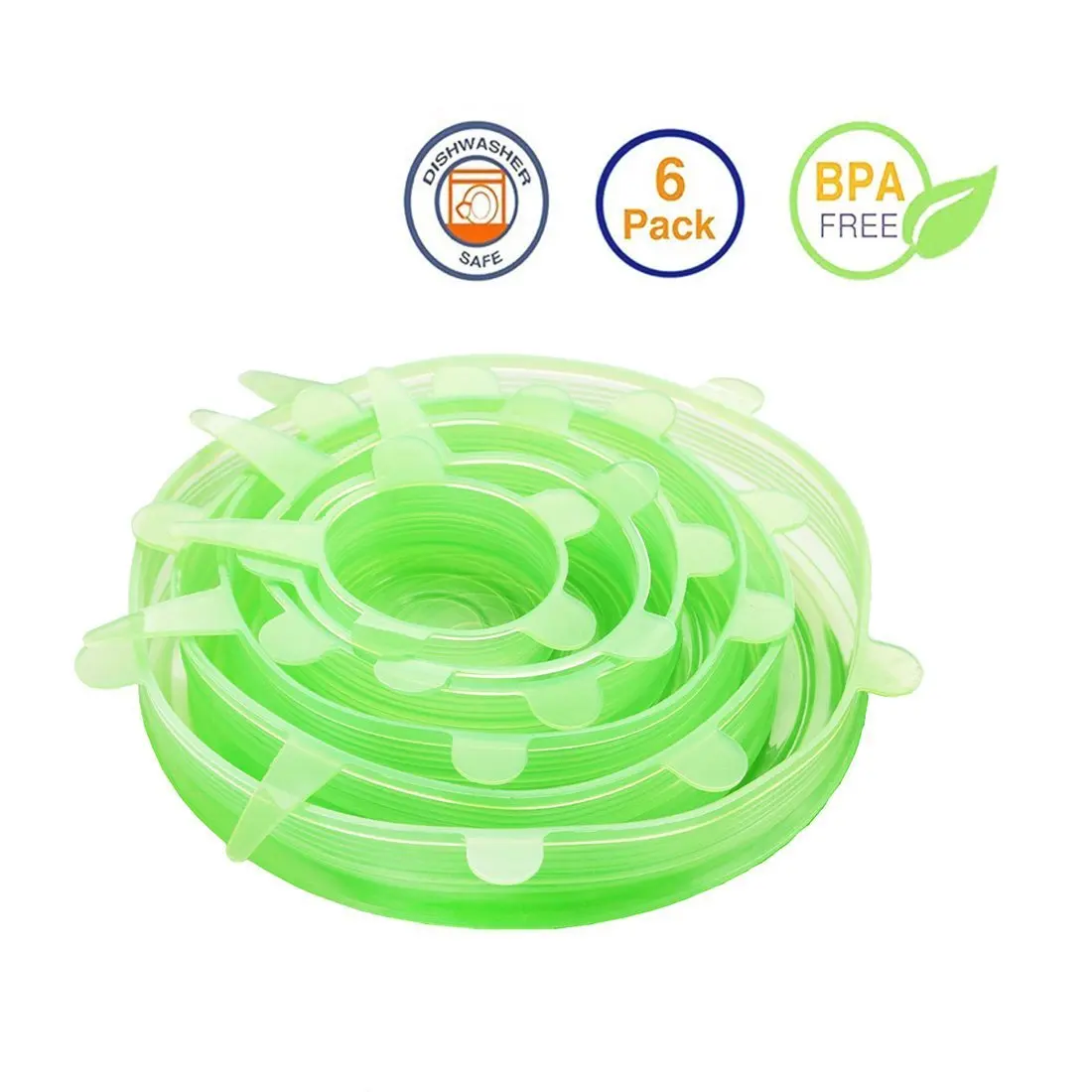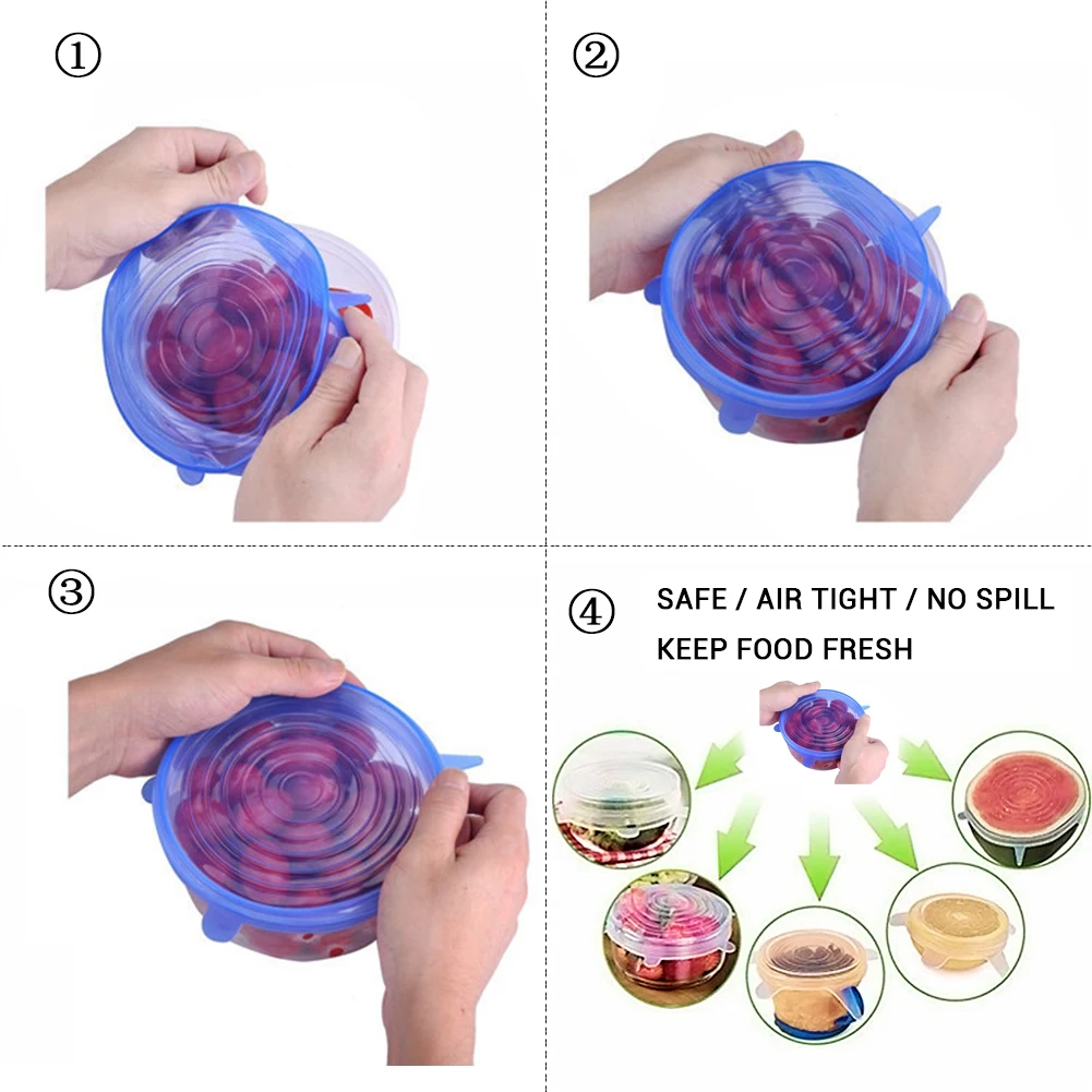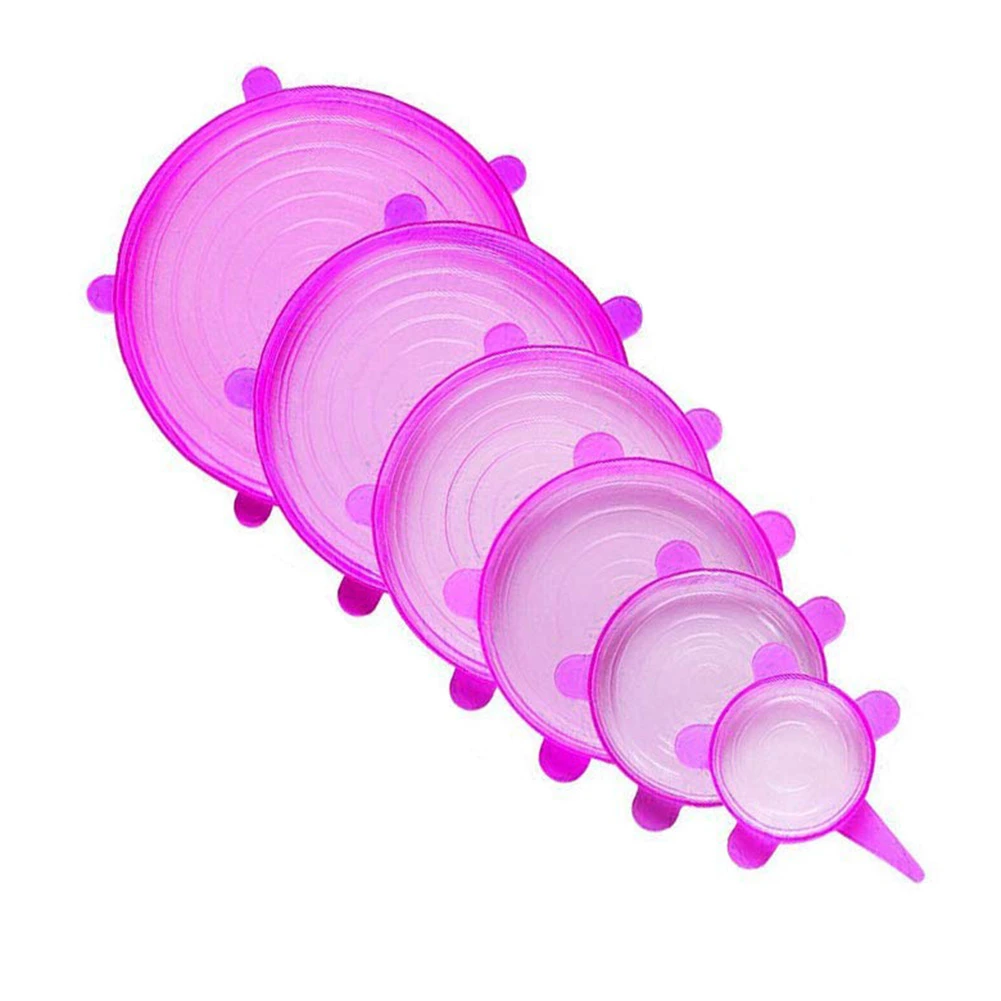 Крышки силиконовые, 6 шт.компл., прочные, многоразовые, для хранени...