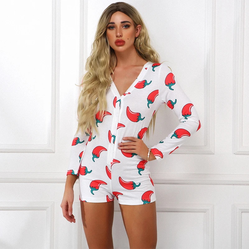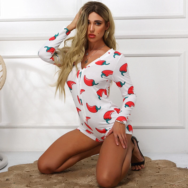 Комбинезон женский, с принтом Чили, с длинным рукавом, V-образным вырезом