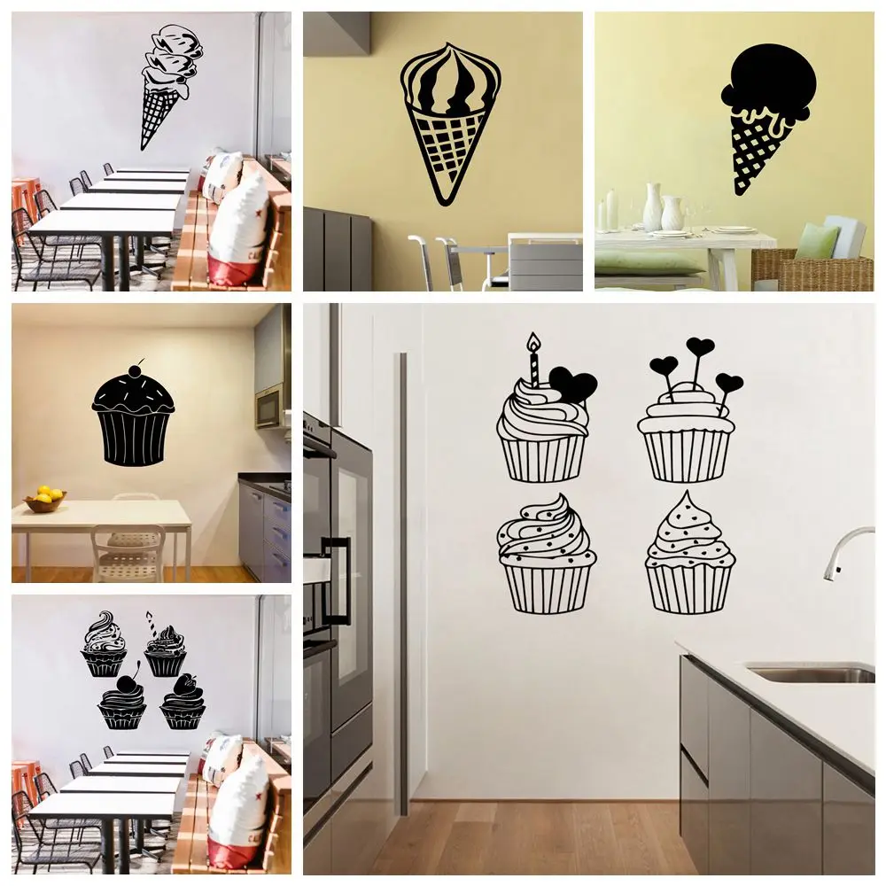 Новое мороженое украшения для дома ПВХ Наклейка на стену для мороженого торт магазин съемные наклейки на стену художественные Переводные обои