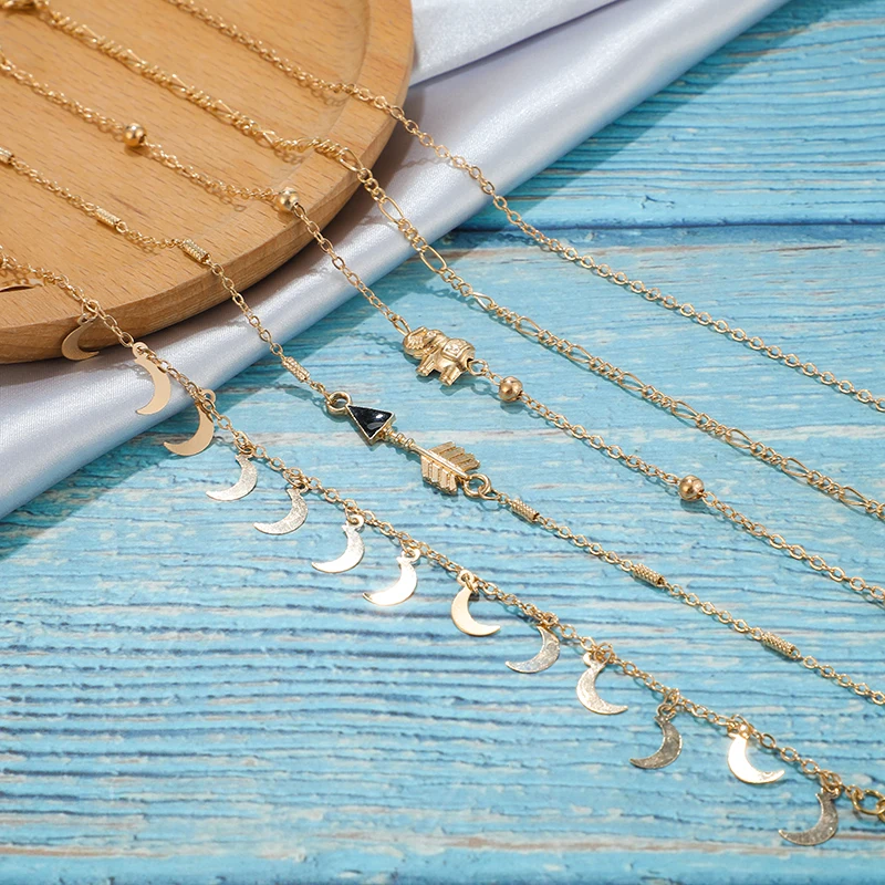 Женский браслет на ногу Tocona, винтажный браслет в стиле бохо, со слоном, луной, пляжные украшения, стрела золотого цвета
