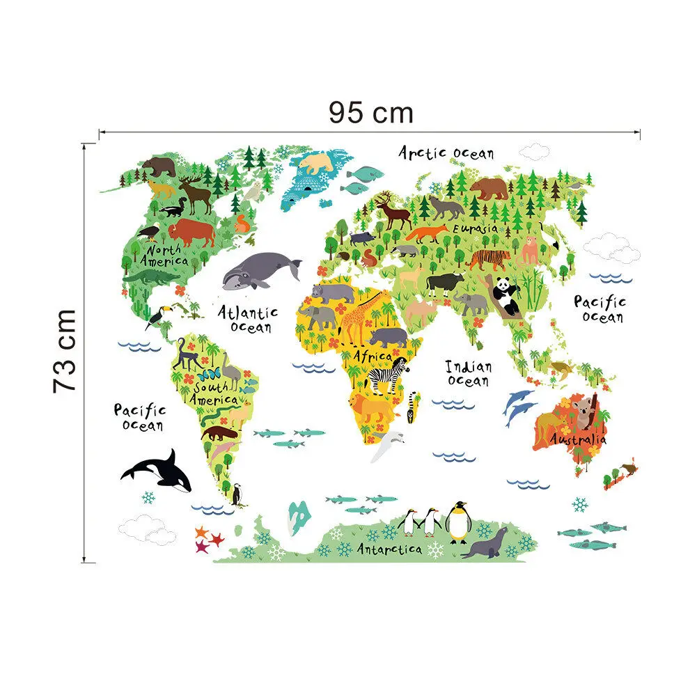 Животные карта мира наклейки на стену для детской комнаты спальни д...