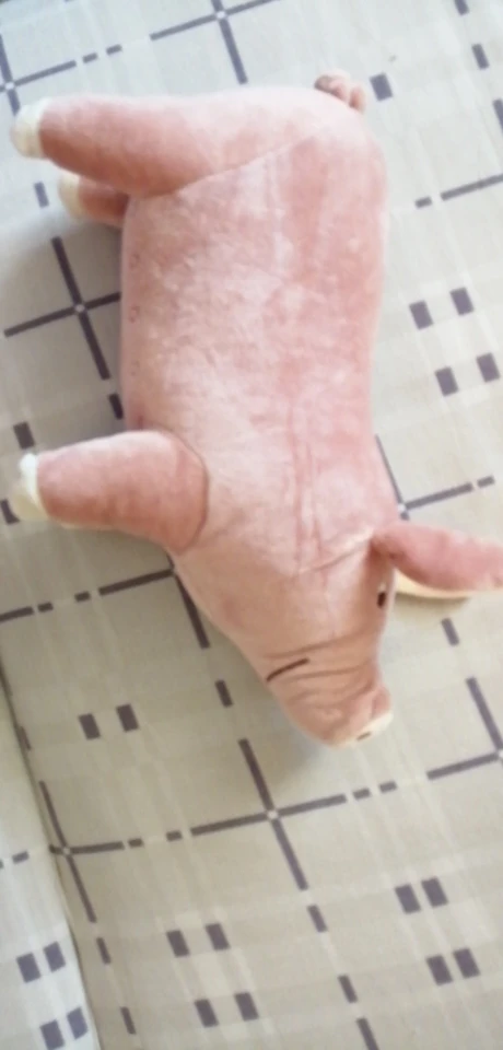 Доставили быстро, до Москвы за 2 недели. Хрюня очень милая, тактильно приятая, плотно набитая, но цвет темнее чем на картинке. Товаром довольна, большое вам спасибо))