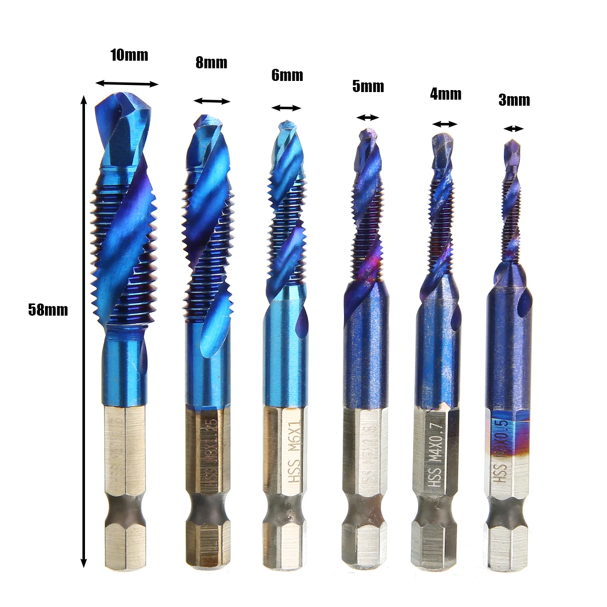 Набор ручных метчиков, комплект из 6 ручных фрез с резьбой в спирали M3, M4, M5, M6, M8, M10, метрический шестигранный хвостовик