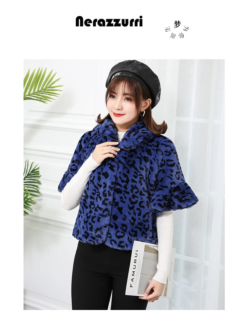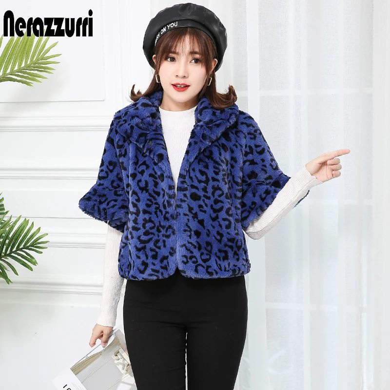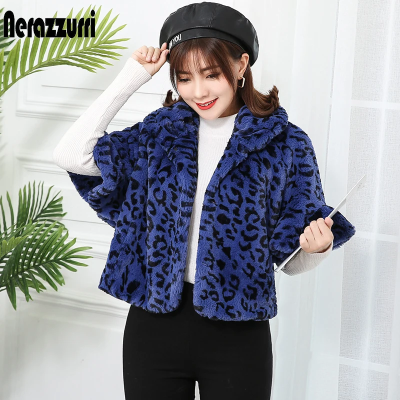 Nerazzurriлеопардовый принт, куртка из искусственного меха для женщин, большие размеры, меховая куртка с рукавом-бабочкой, с коротким рукавом, Осенний дизайнерский короткий укороченный топ шуба искусственная 5xl 6xl