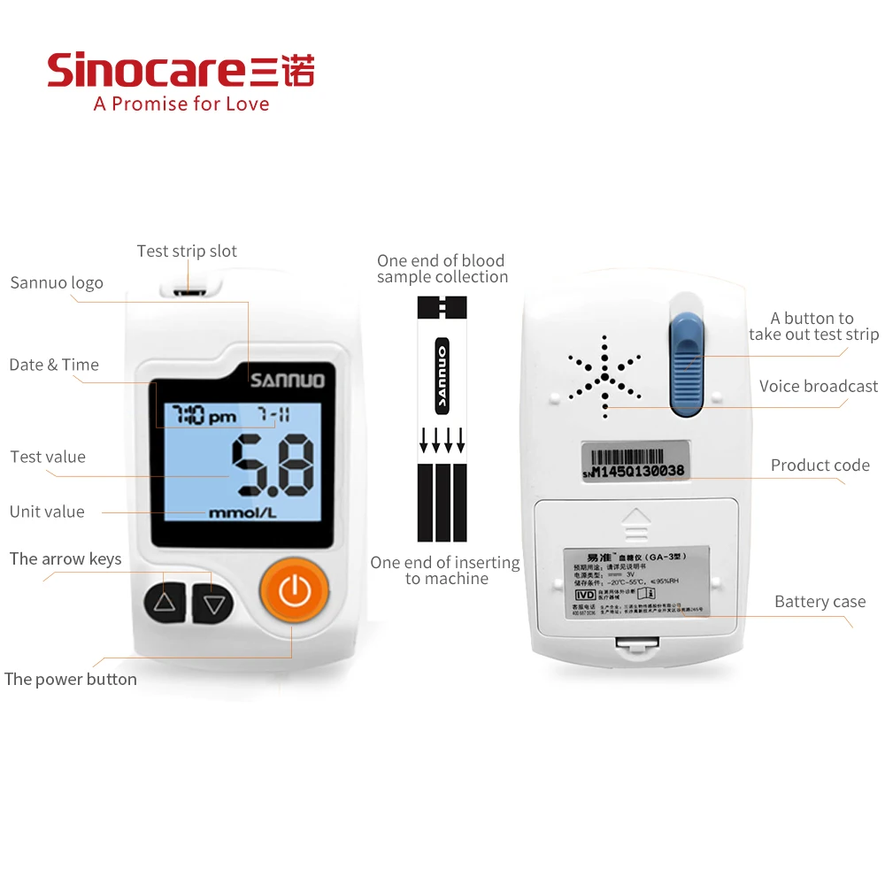 Комплект глюкометра Sinocare GA-3 с тест-полосками и иглами