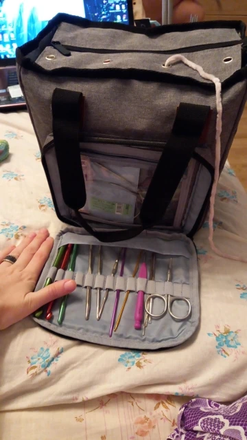 Второй раз спрашиваю. I Love This bag. Это идеальный размер. Он имеет несколько отсеков для переноски игл и других аксессуаров, а не только нитей. Кроме того, качество отличное, хорошие швы и закрытия. Супер рекомендую!