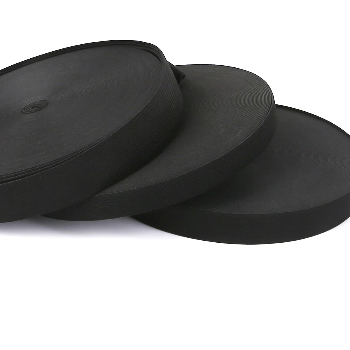 Черная плоская тонкая широкая эластичная резинка смешанного размера...