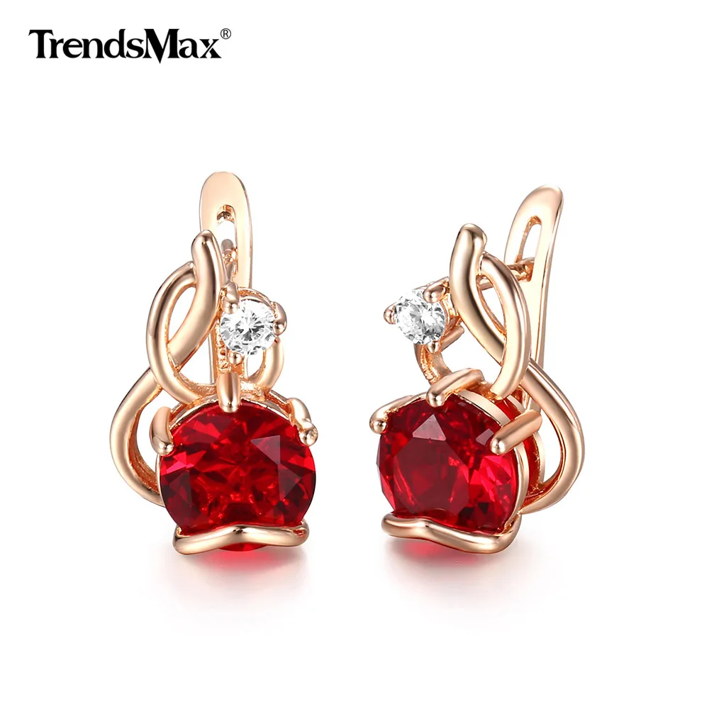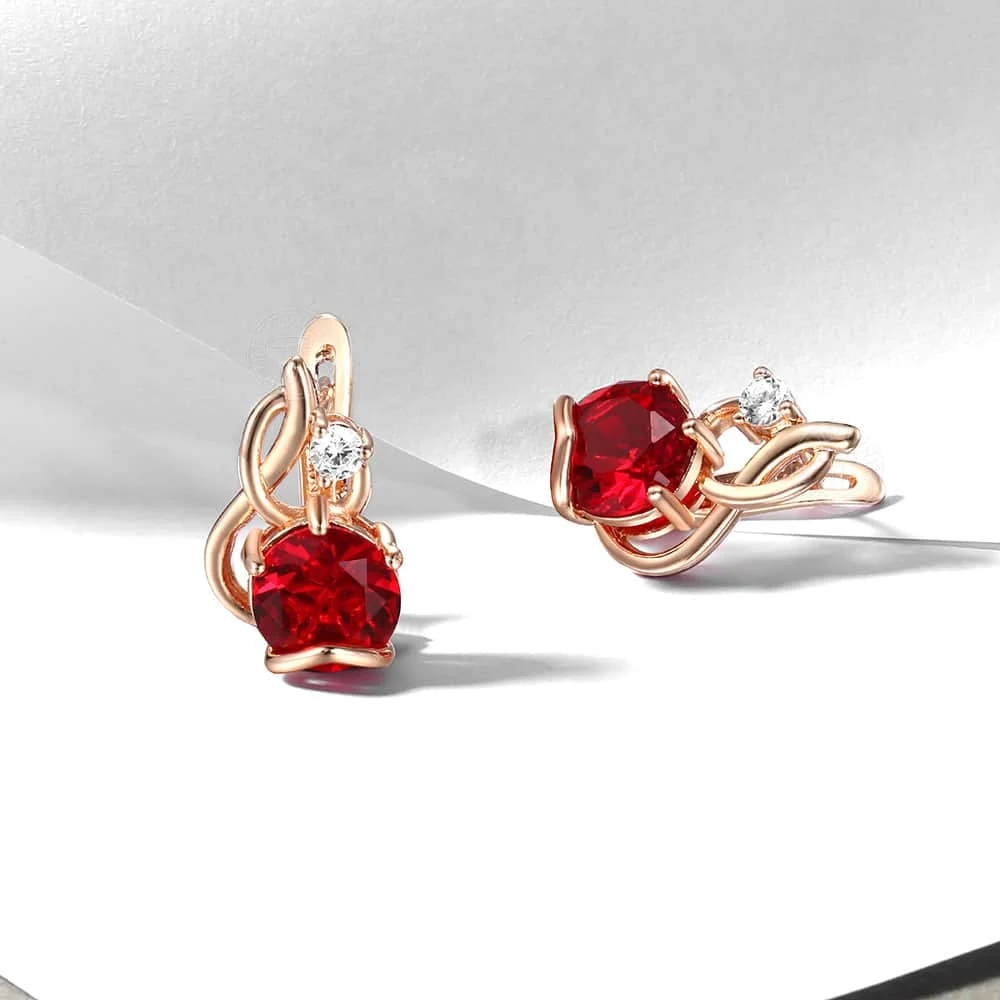 Серьги женские из розового золота серьги-гвоздики с драгоценными камнями пробы, с фианитами, красные, GE268, 585