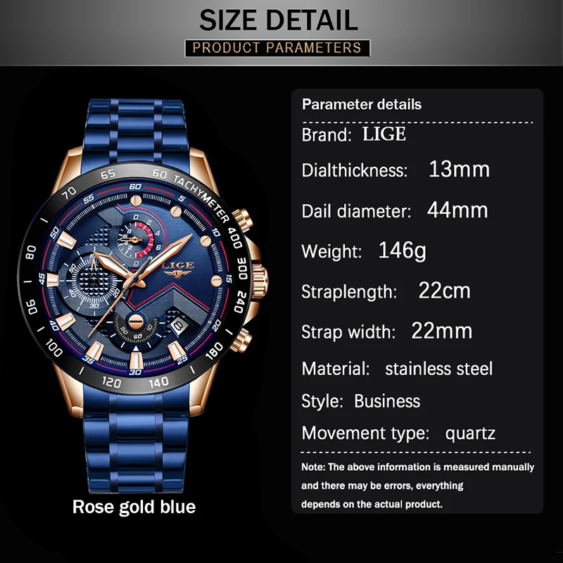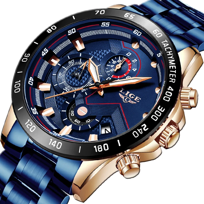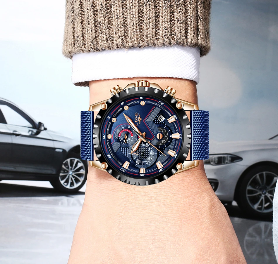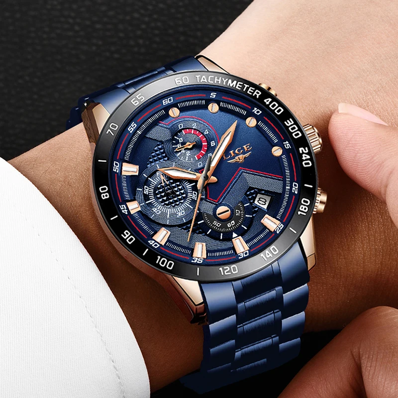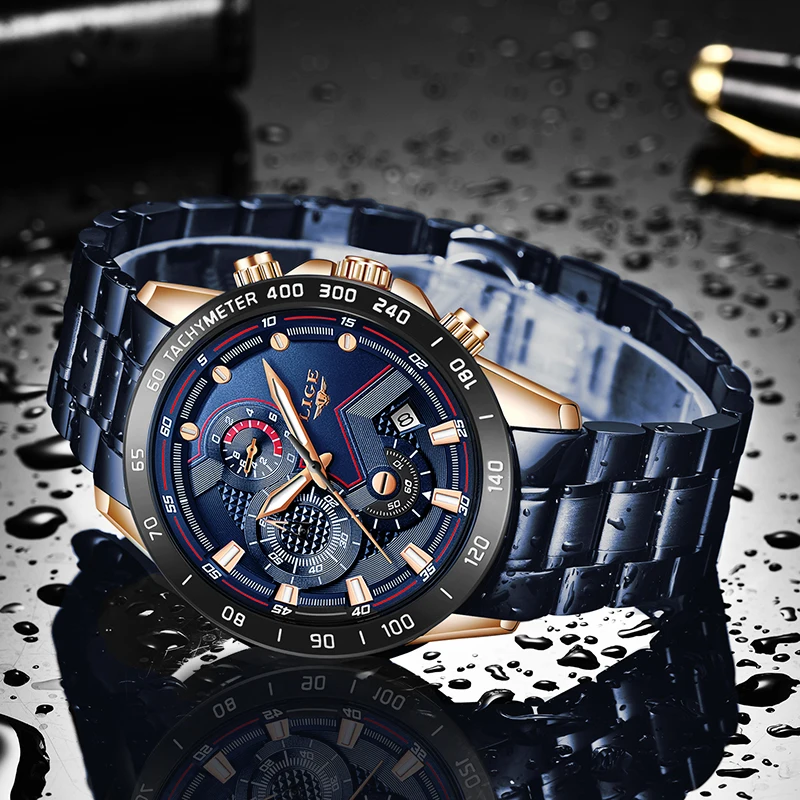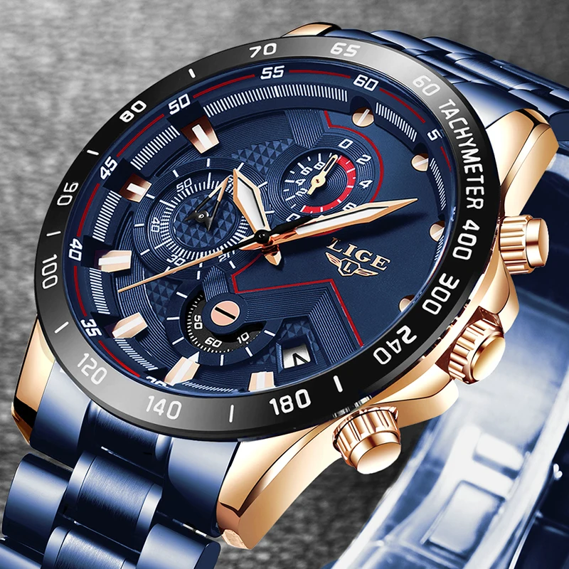 Мужские наручные часы LIGE, синие кварцевые часы из нержавеющей стали с хронографом, повседневные водонепроницаемые часы с датой, 2019