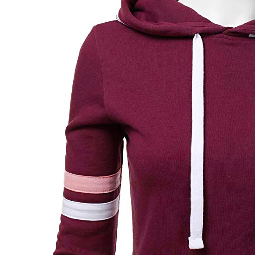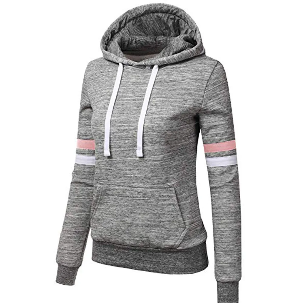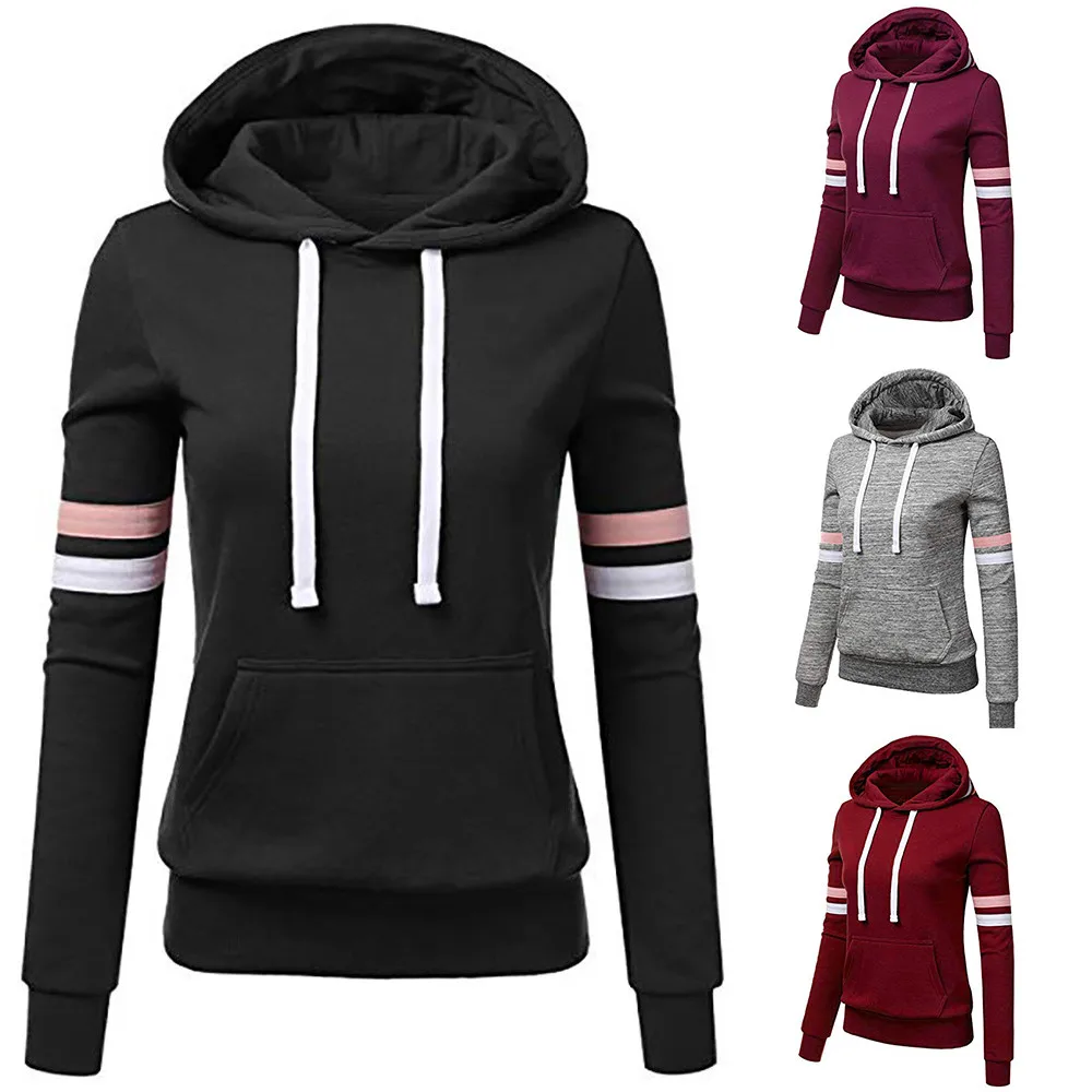 Свитшот женский спортивный, худи в полоску с длинным рукавом, пуловер с капюшоном и карманами, повседневные топы, весна-осень