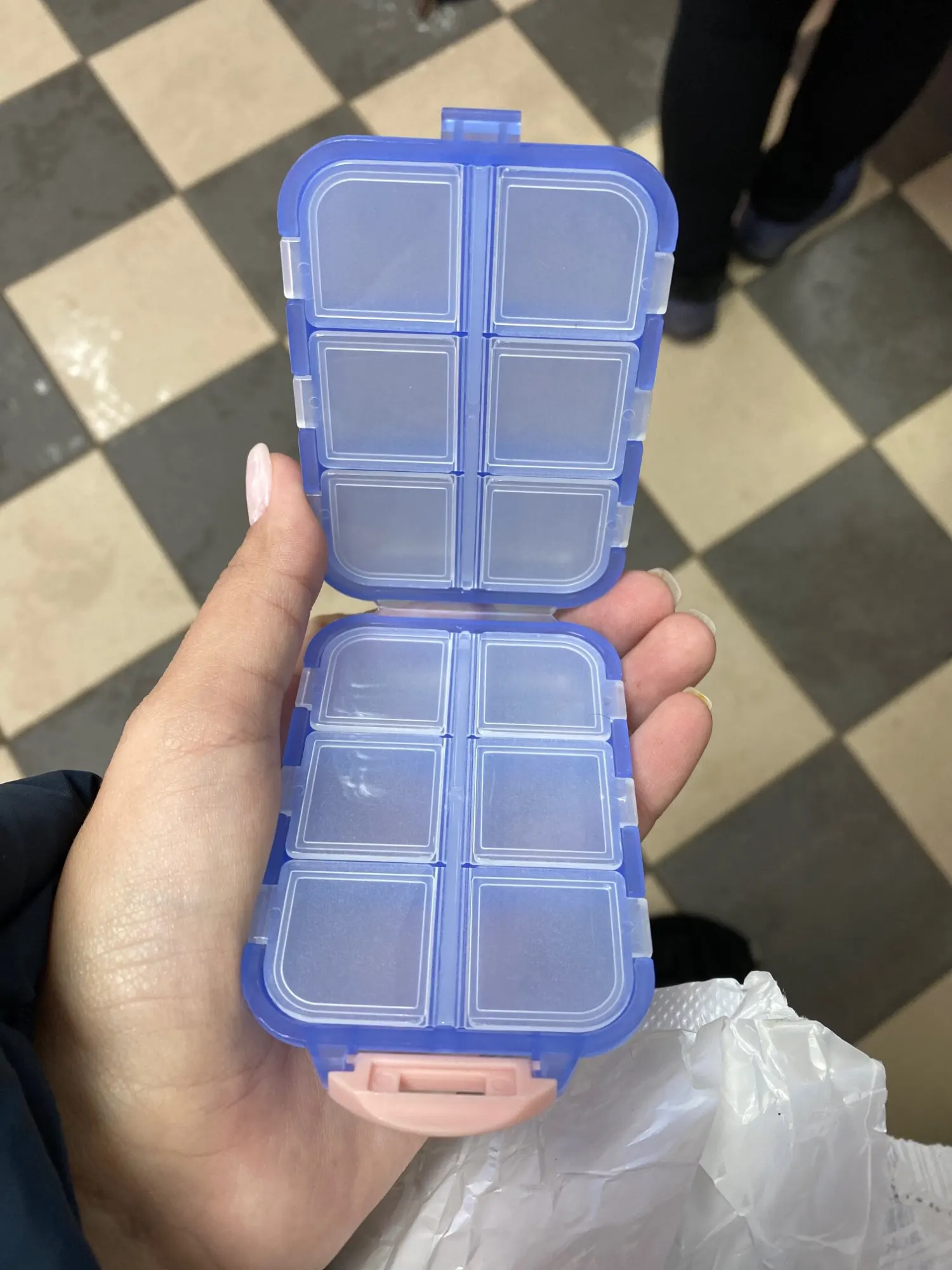 Маленькие отсеки для таблеток. Каждый отсек закрывается отдельно. Но не все виды таблеток помещаются.