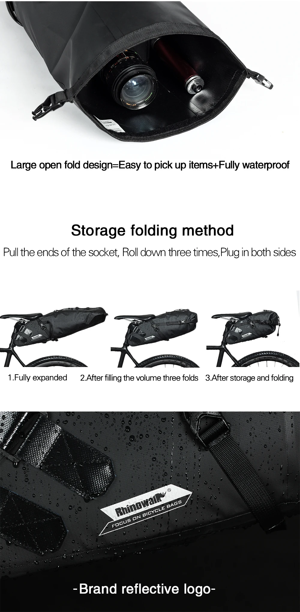 Велосипедная водонепроницаемая сумка-седло Rhinowalk, 13 л, светоотражающая вместительная Складная задняя Сумка, велосипедный багажник для горного велосипеда