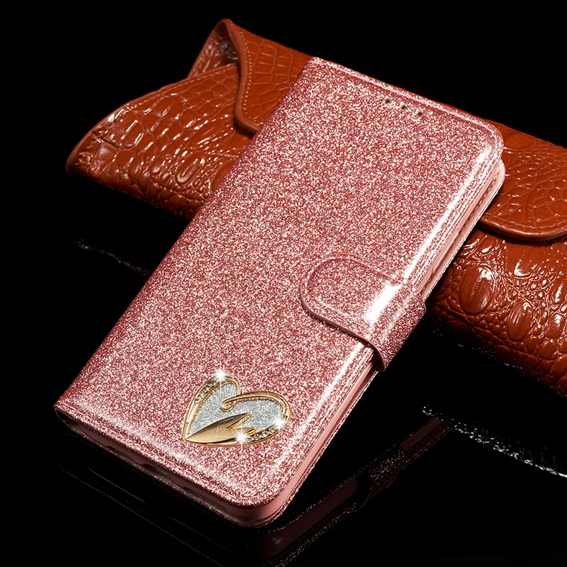 Блестящий чехол с сердцем и бриллиантами для iPhone 11 Pro Max 6 6s 7 8 Plus, откидной кожаный чехол-бумажник для iPhone X XR XS Max, чехлы для телефонов