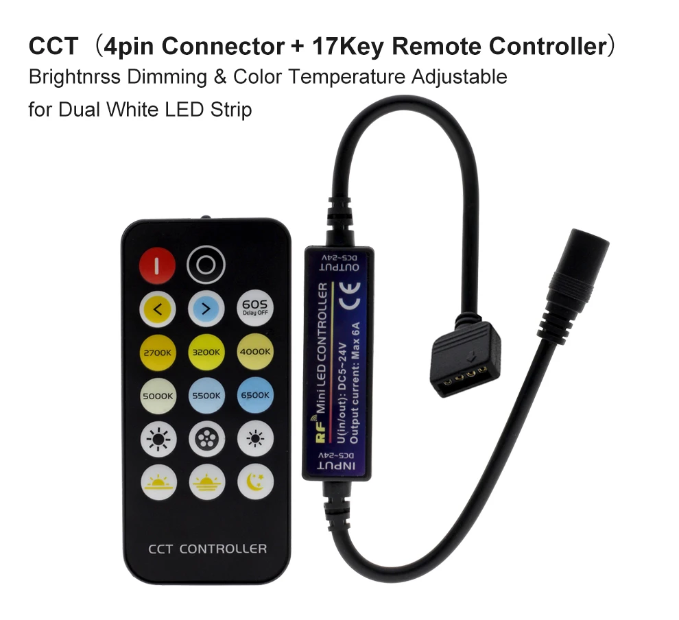 2.CCT (4-контактный разъем) (17Key пульт дистанционного управления)Brightnrss Диммирование и цветовая температура регулируемая для двойной белой светодиодной ленты