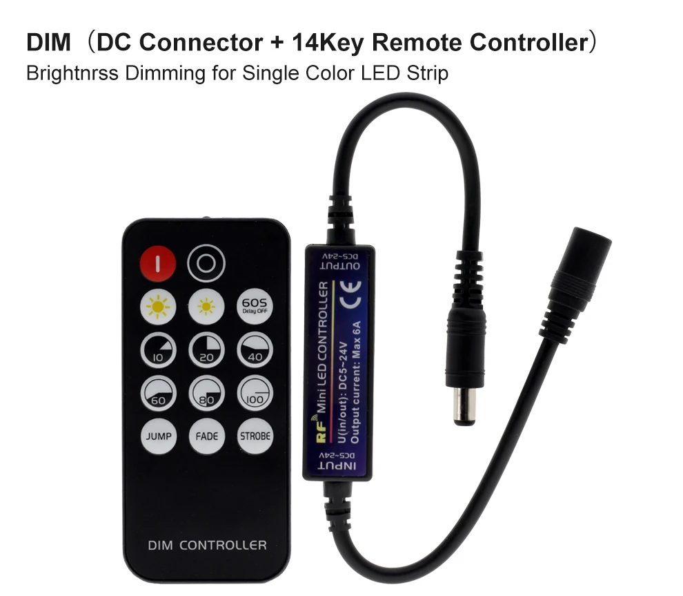 Подходит для:1.DIM (разъем постоянного тока) (14Key пульт дистанционного управления)Brightnrss затемнение для одноцветной светодиодной ленты