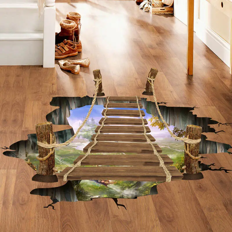 3D Наклейка на стену с мостом, напольнаянастенная наклейка, съемные...