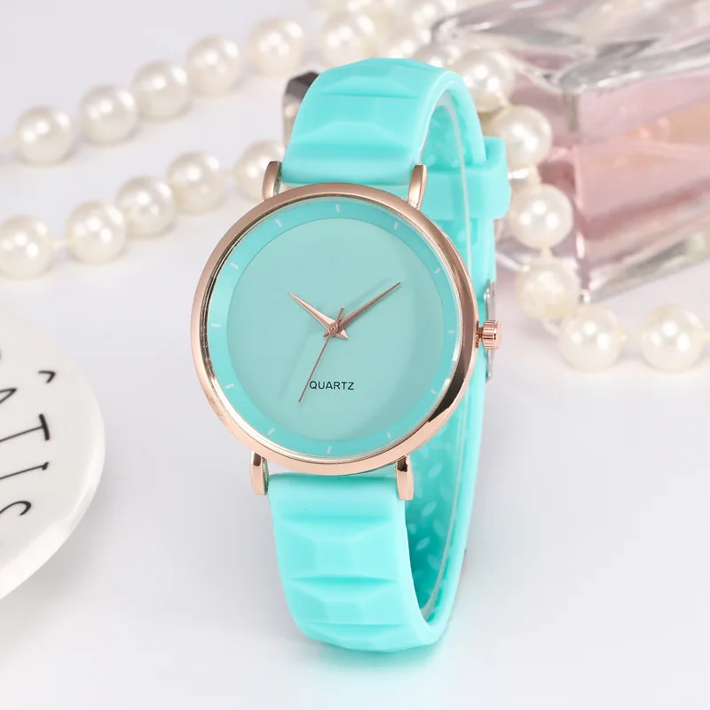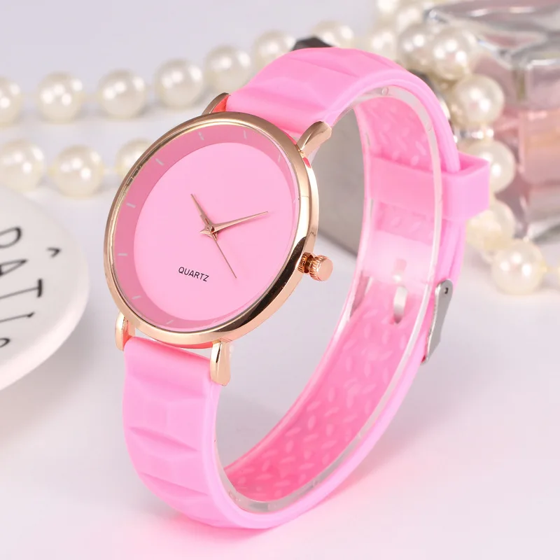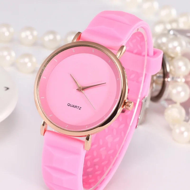 Часы женские, розовое золото, с силиконовым ремешком