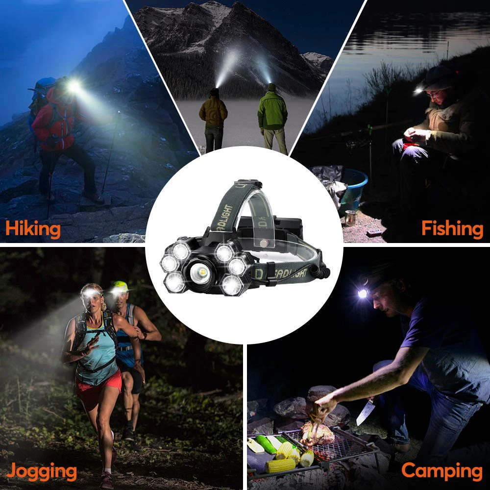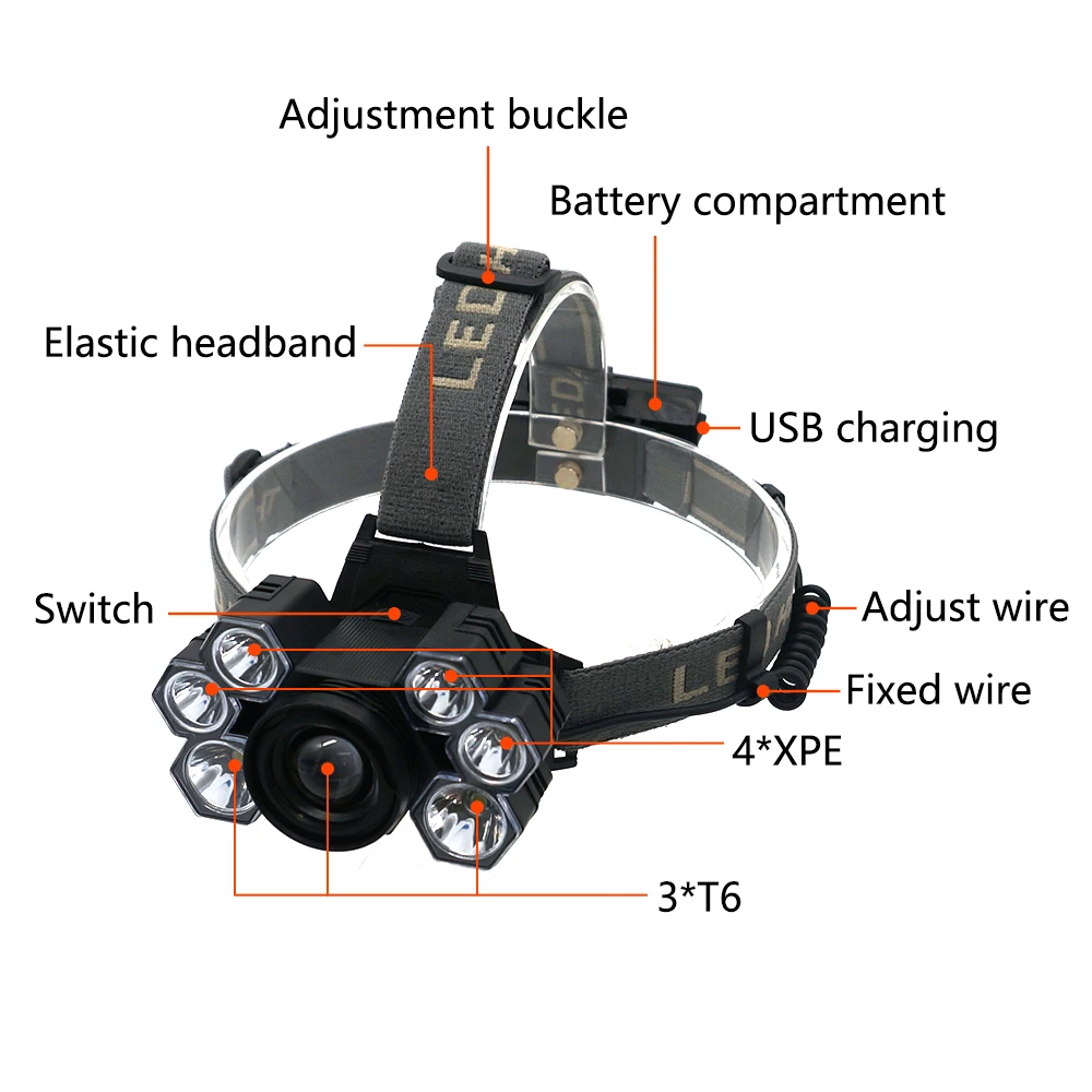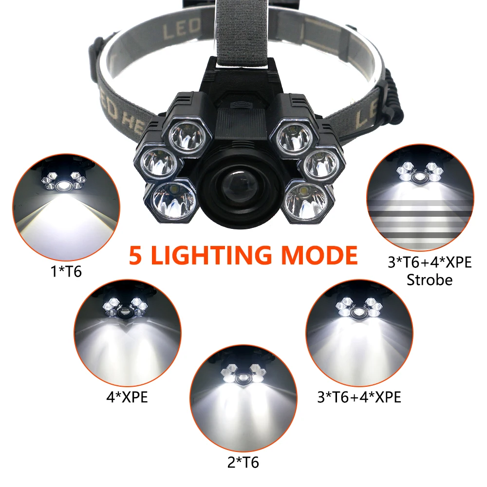 Светодиодный налобный фонарь с зарядкой от USB, 5 режимов, яркий, 6000 лм