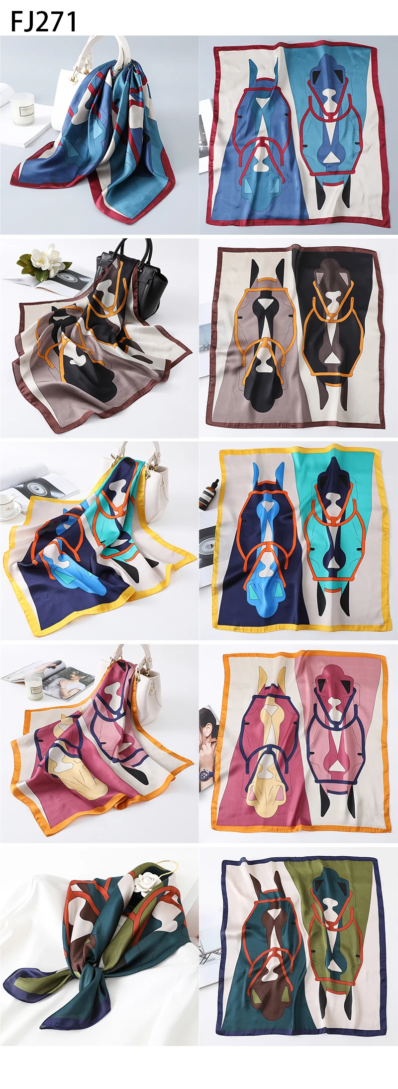 Платок женский Шелковый, квадратный, с цветочным принтом, 2021