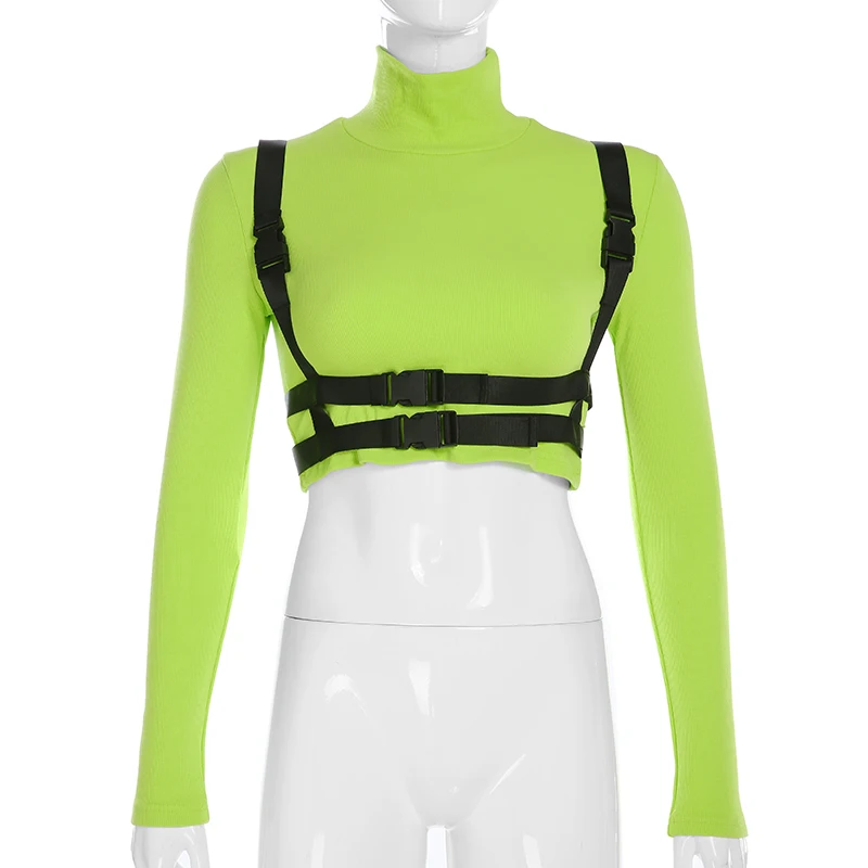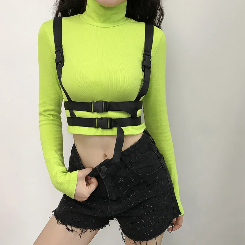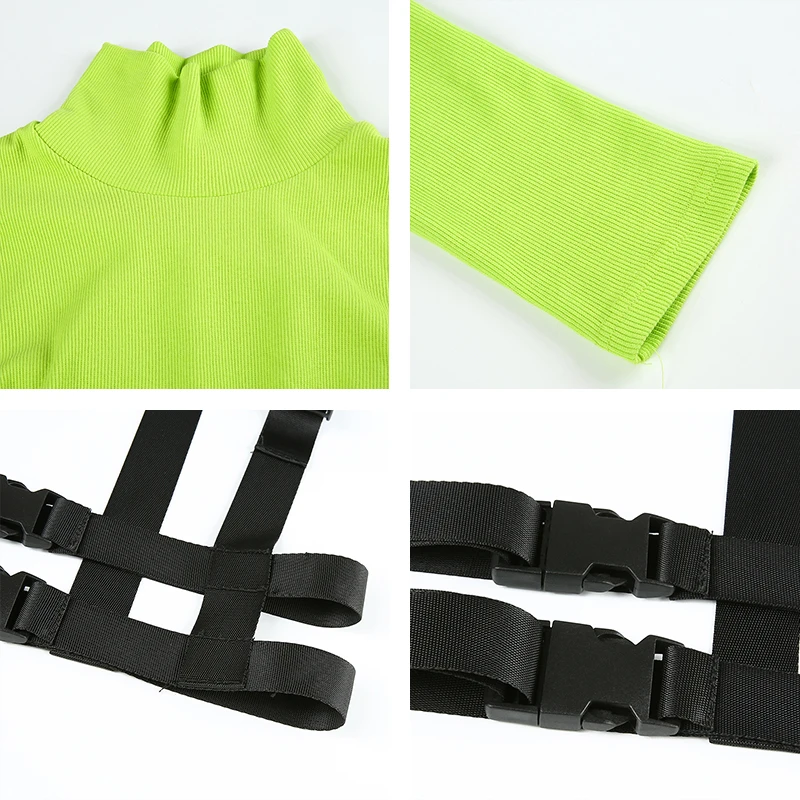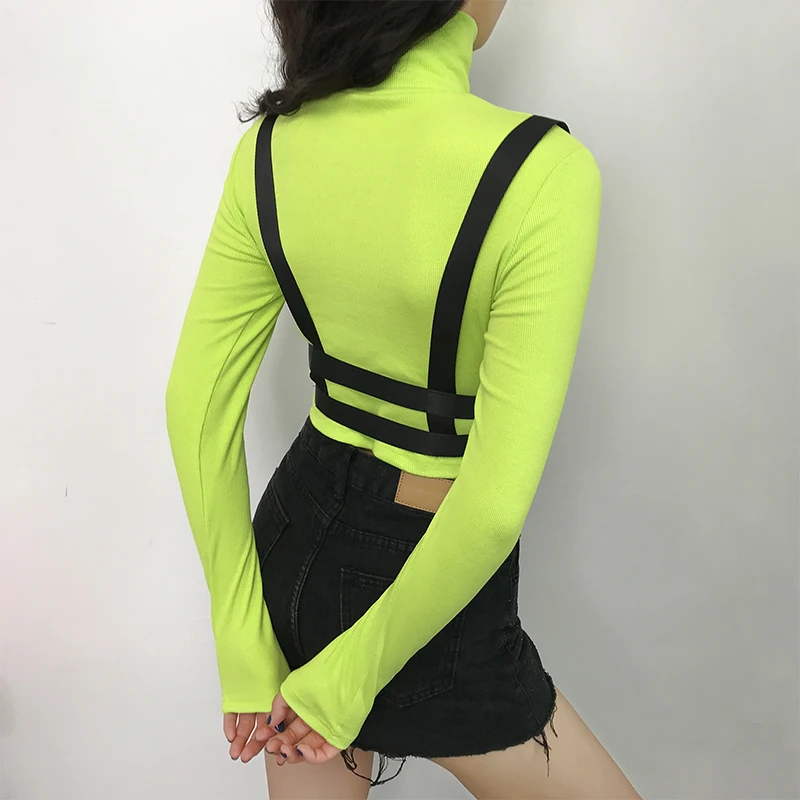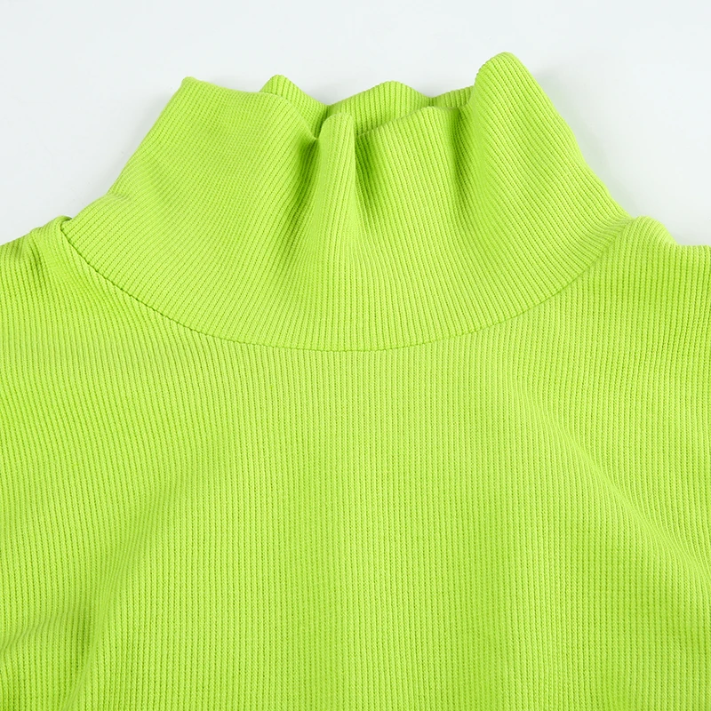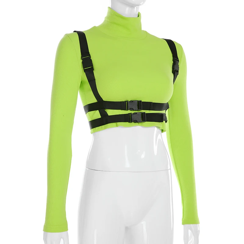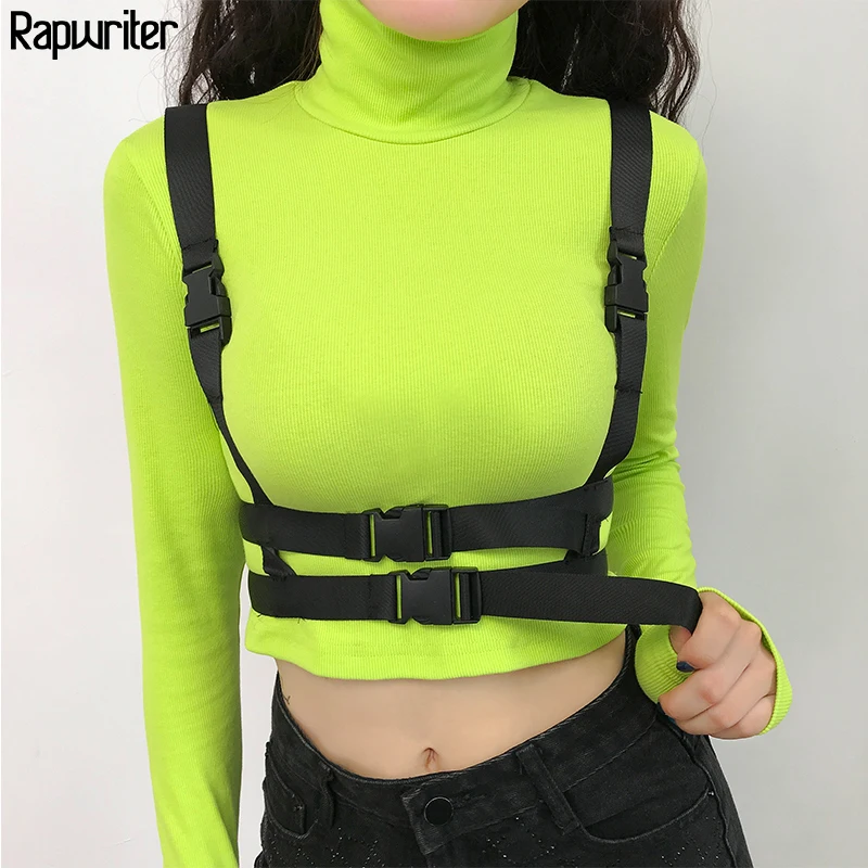 Rapwriter свободного покроя с высоким, плотно облегающим шею воротником с длинными рукавами из эластичной ткани неоновый зеленый Футболка 2020, Женская обувь в стиле пэчворк туфли с пряжкой и ремешком в стиле Харадзюку Топы Femmme