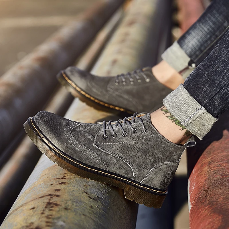Прямая поставка; мужские ботинки из натуральной кожи; сезон осень-зима; ботильоны; модная мужская обувь; Высококачественная Винтажная обувь; обувь на шнуровке