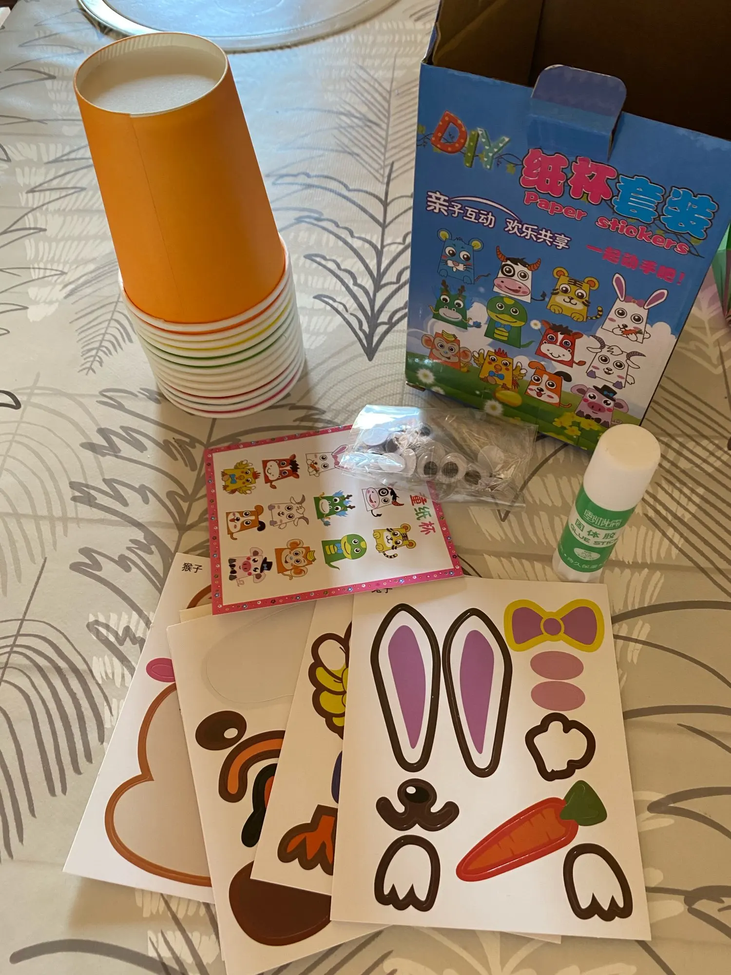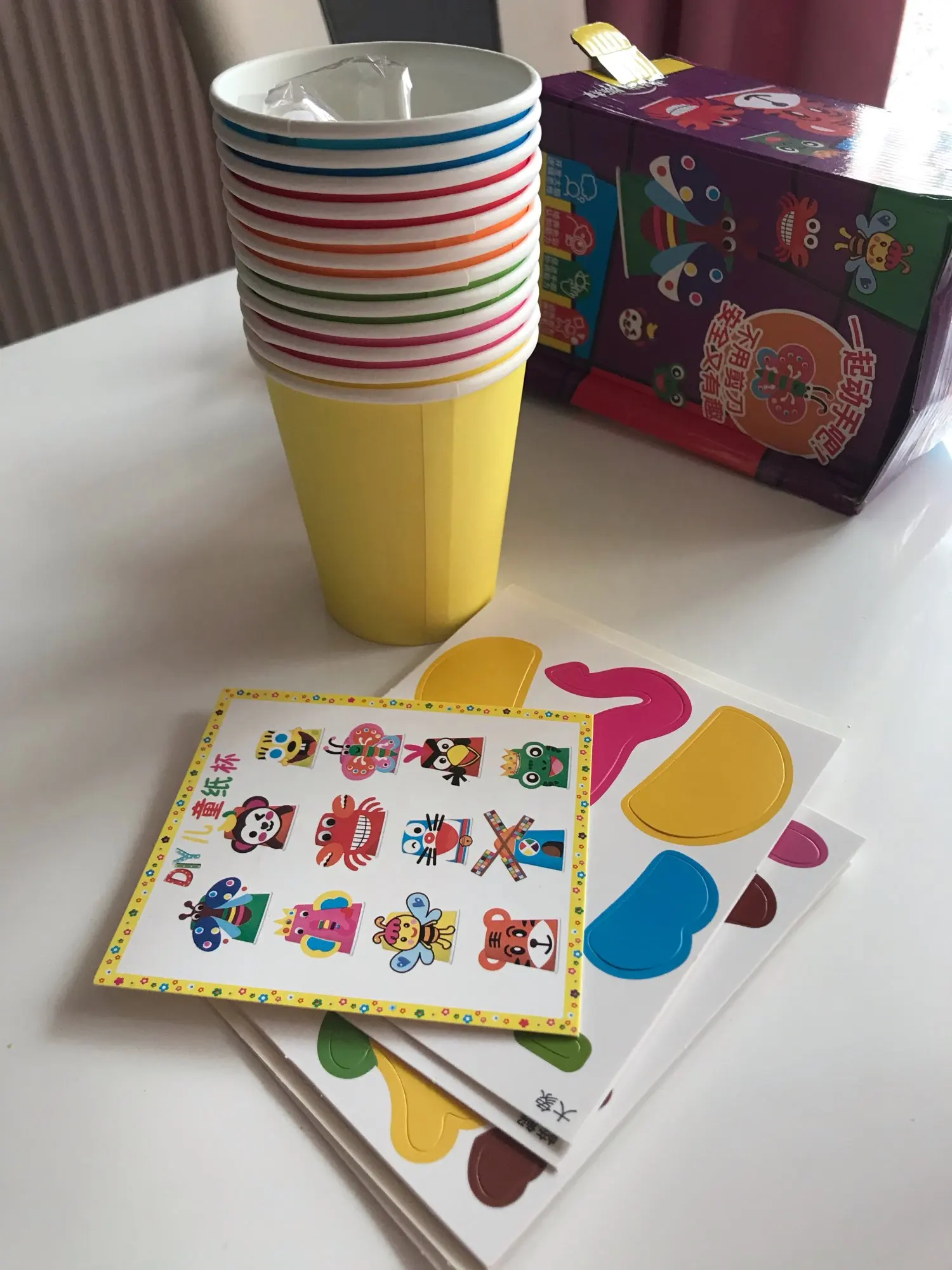 Милый набор, но наклеек нет, а клея вместо двусторонней клейкой ленты. С ним вы можете не красиво приклеивать. Мне также интересно, остается ли он на месте. Для детей это результат, нам очень сложно.