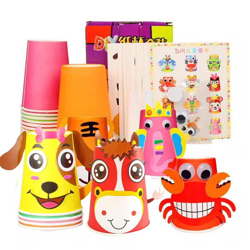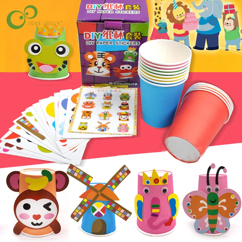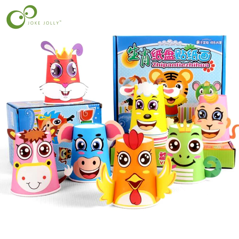 12 шт.компл. детские животные Сделай Сам бумажные стаканчики наклейки Материал набор детский сад Школа Искусство ремесло Обучающие игрушки ZXH