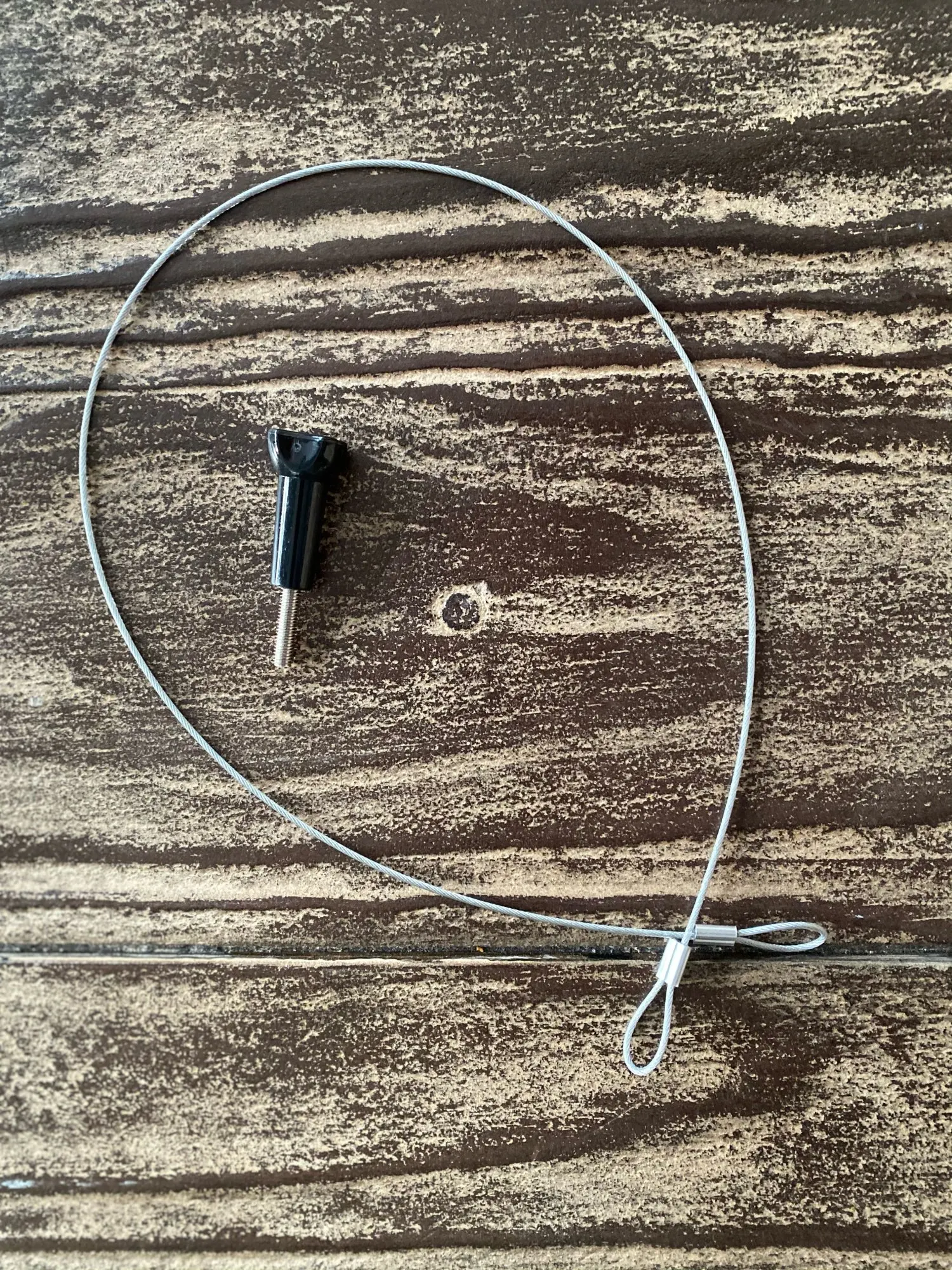 Тросик пришел за 2 недели, довольно быстро. Точно как на фото продавца, ничего особенного тут не напишешь, крепкий, стальной в резиновой оболочке, камеру точно удержит)