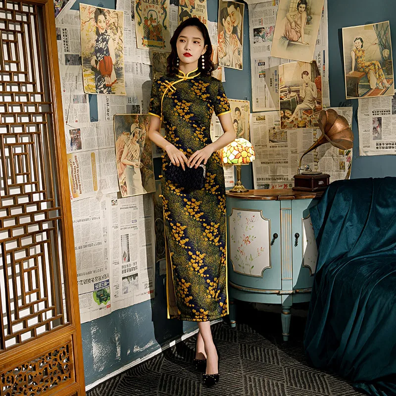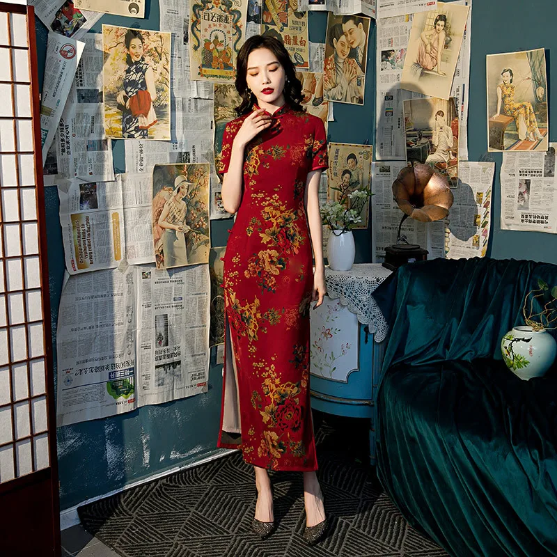 Сексуальная традиционная китайская одежда для женщин Cheongsam Qipao платье с цветком Размер S M L XL XXL XXXL