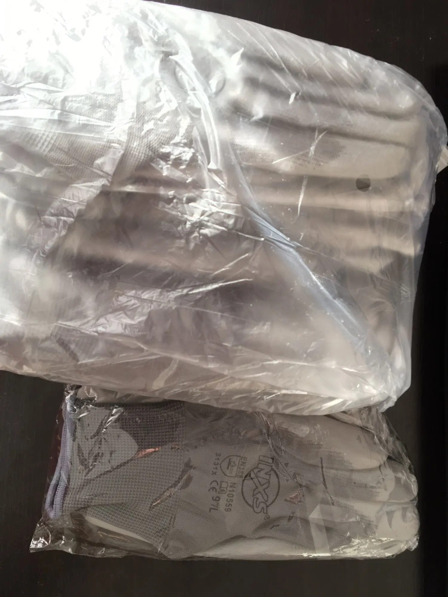 Доставка до РБ месяц, с полным отслеживанием. Это уже второй заказ. Перчатки хорошего качества, неприятный запах отсутствует. Руки не потеют, достаточно прочные, боятся высоких температур. Серые перчатки упакованы попарно в индивидуальную упаковку, белые - все в пакет. Количество, полученных, соответствуют заявленному. Все супер.