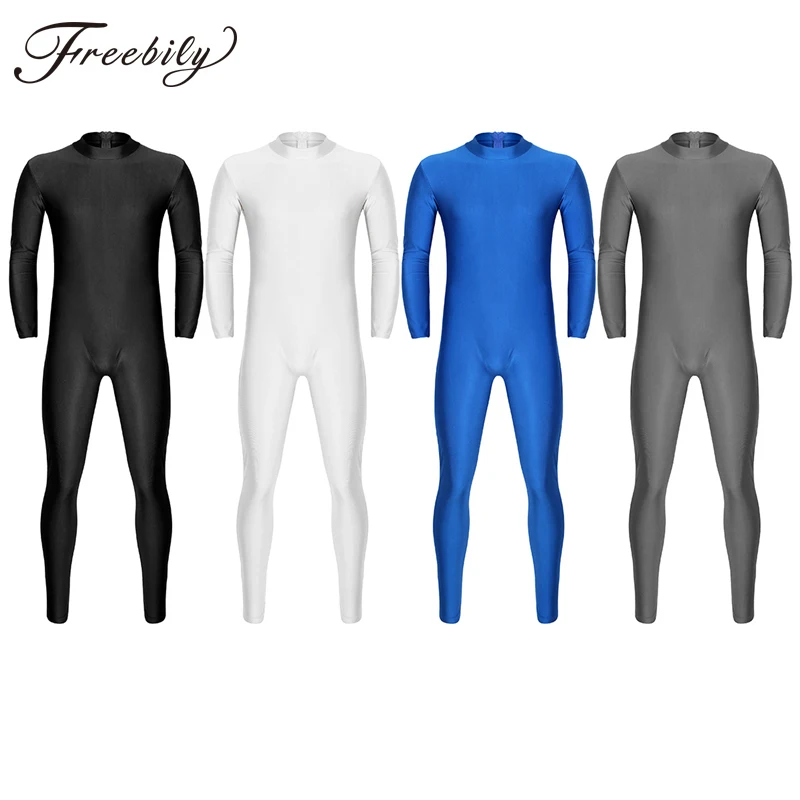 Мужской облегающий гимнастический костюм с длинными рукавами мужской спандекс лайкра Unitard взрослый макет шеи боди полная длина Одежда для танцев, балета трико