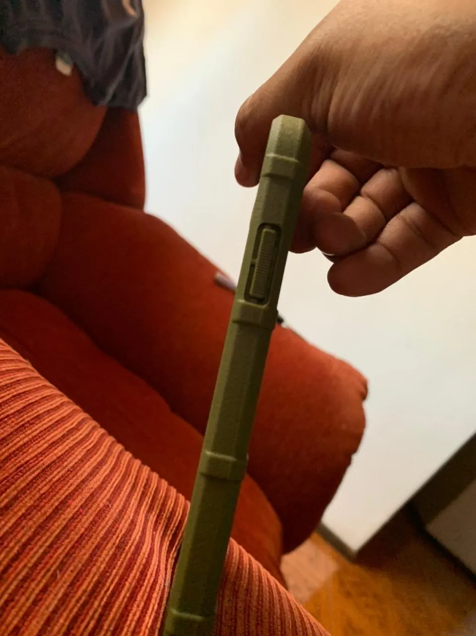 Отличный чехол, не скользит в руке и не вытягивает все внутренности из кармана. Цветом доволен. Спасибо!