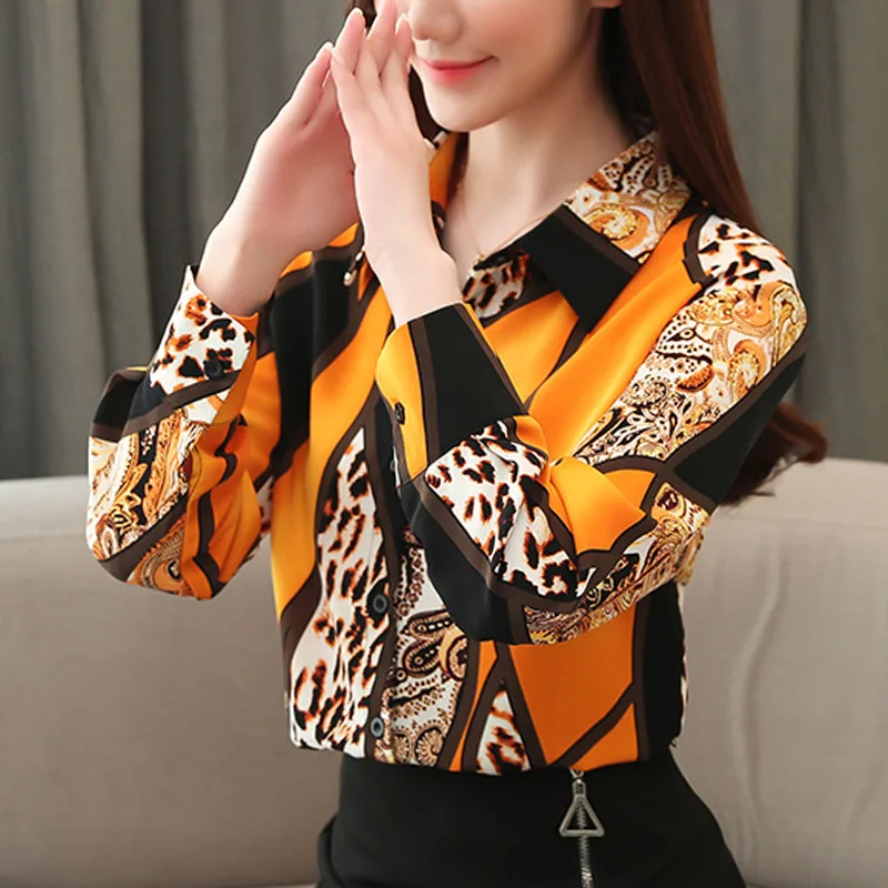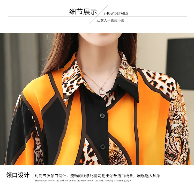Блузка для женщин 2021 модные шифоновые рубашки для женщин топы со вставками с леопардовым принтом с квадратным вырезом Blusas Femininas футболки с леопардовым принтом и кнопками 8092 50